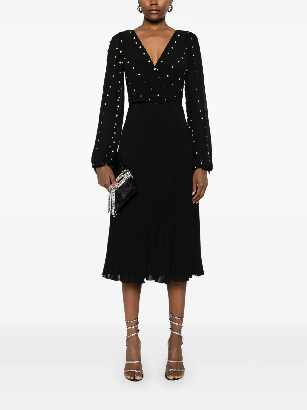 Платье миди с кристаллами Nissa, черный