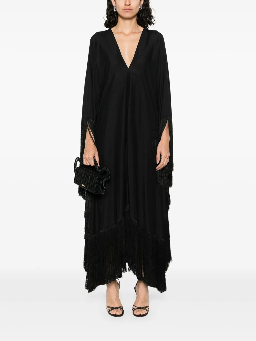 Платье макси с бахромой Taller Marmo, черный