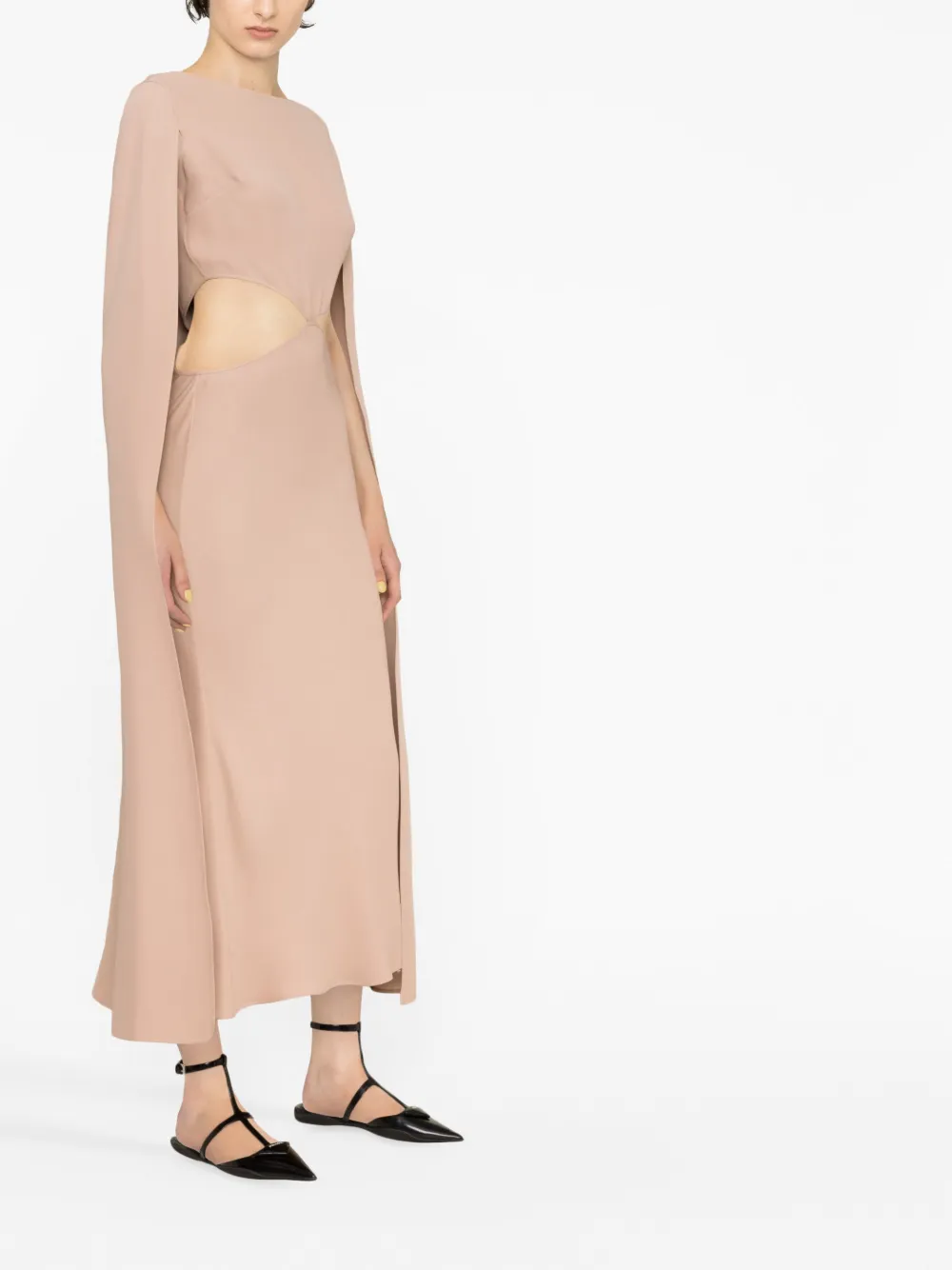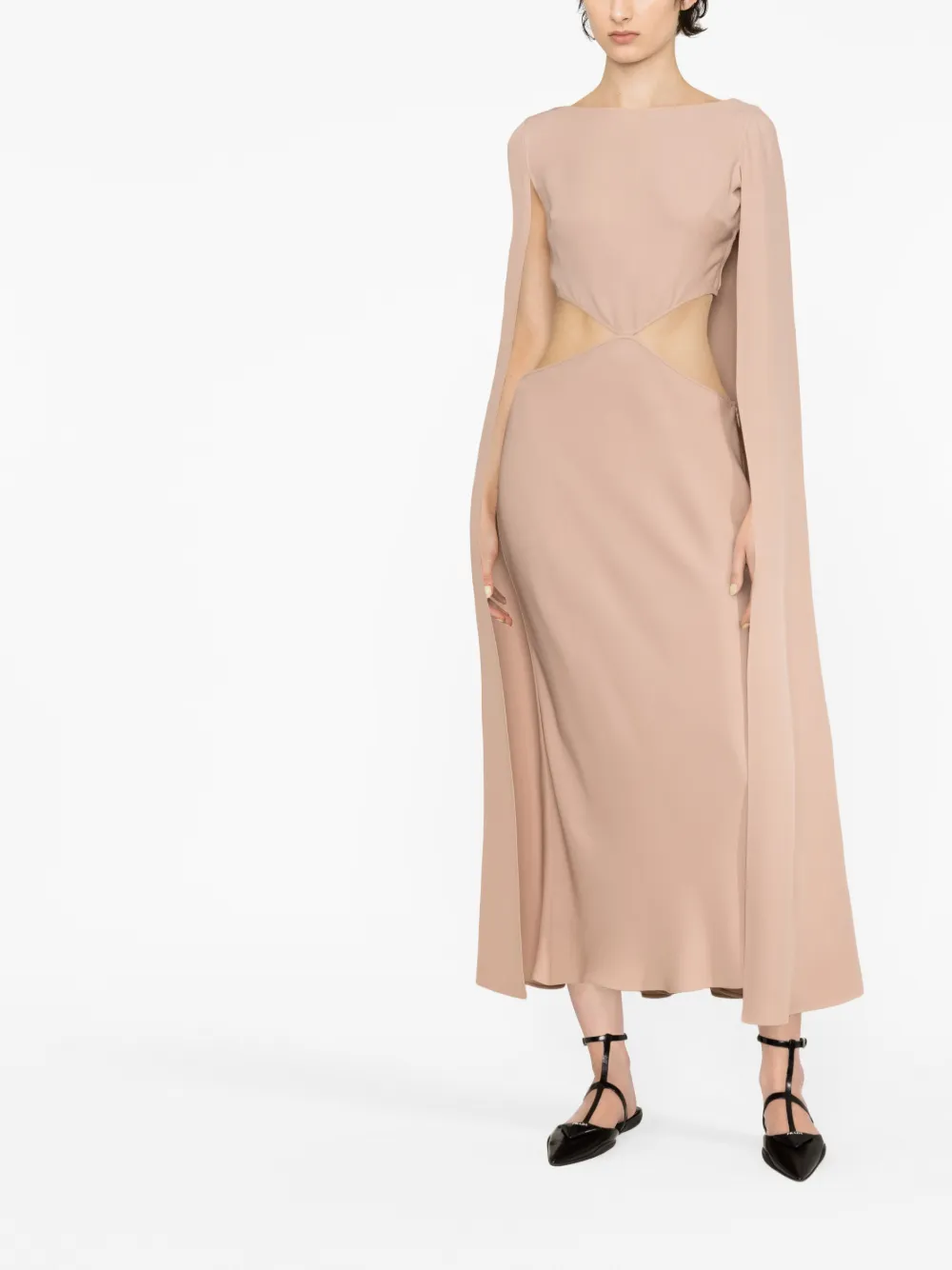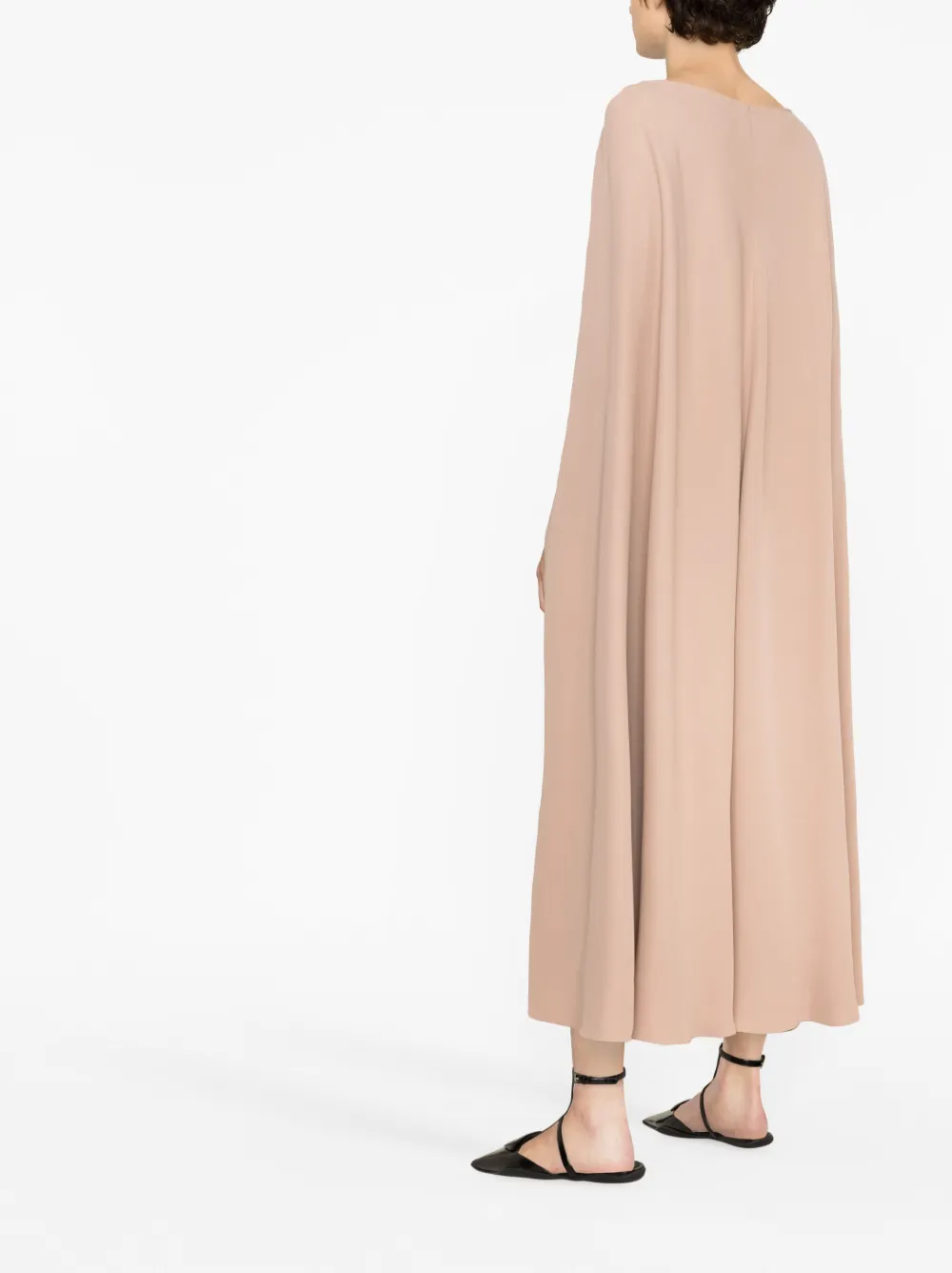 Коллекция Valentino Ready To Wear, расцветка Blush Pink, шелк, кейп, вырезные детали, круглый вырез и высота по щиколотку.