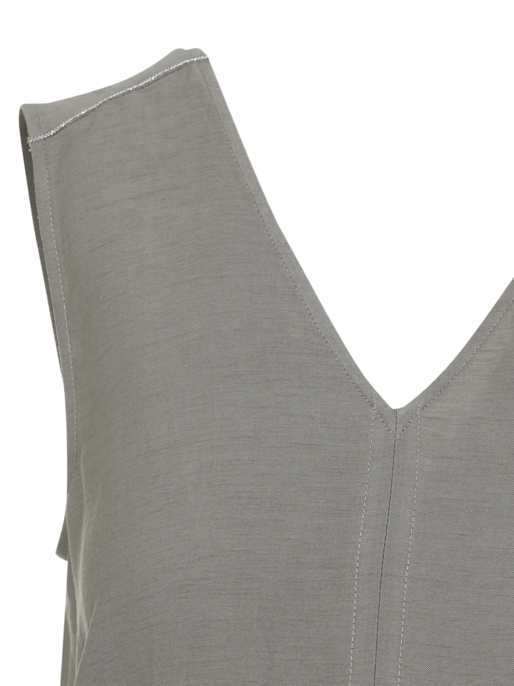 Глиняно-коричневый топ без рукавов с V-образным вырезом, кулиской, боковыми разрезами и тональной отстрочкой