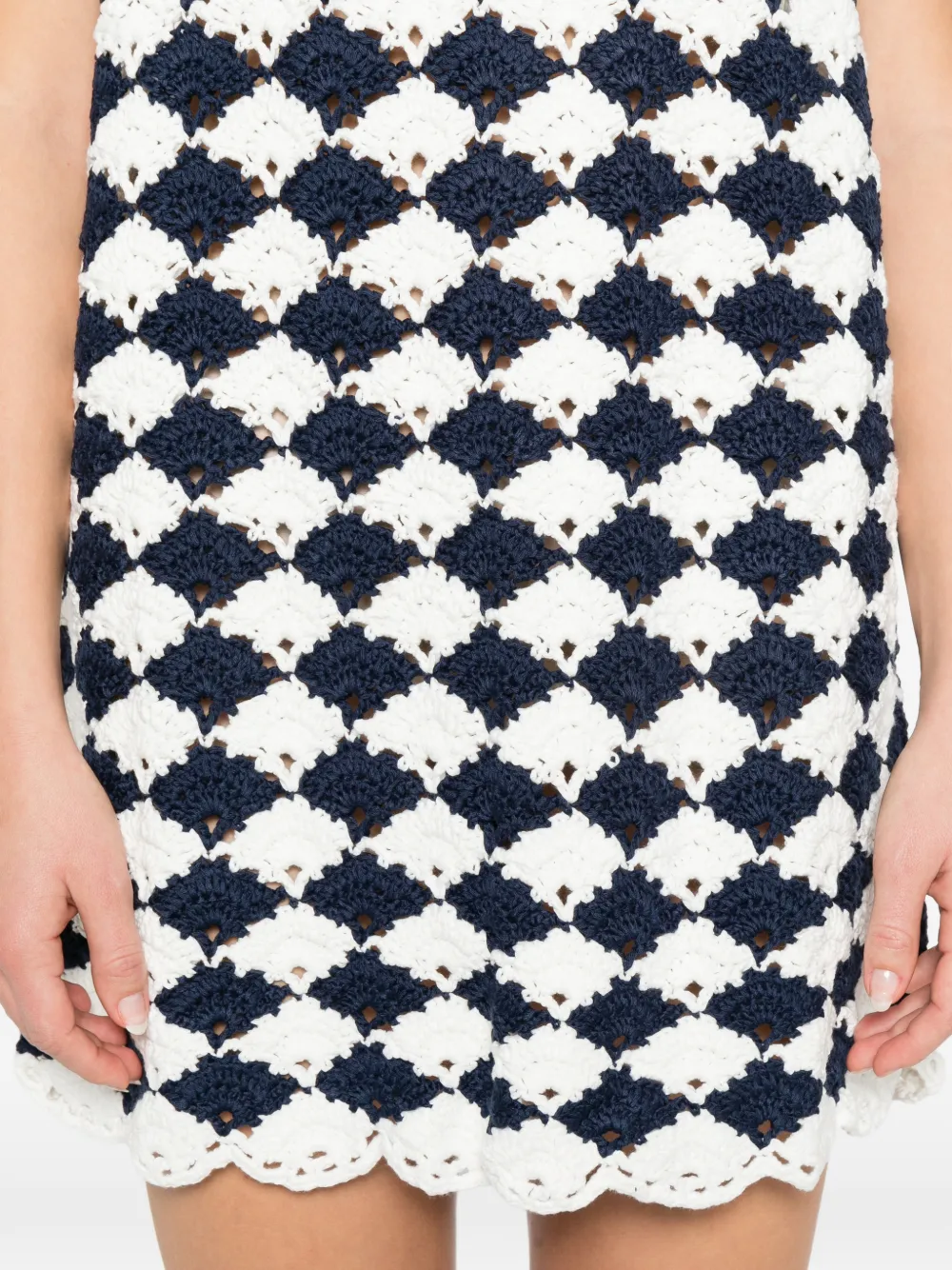 Синий и белый вязаный с узором топ без рукавов с круглым вырезом и фигурной (волнистой) отделкой