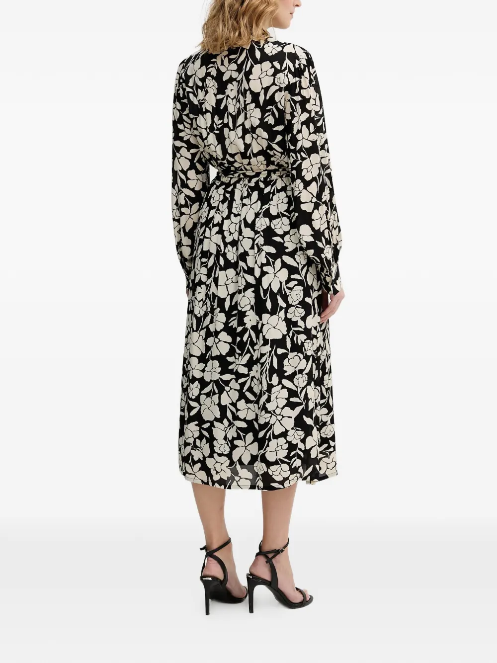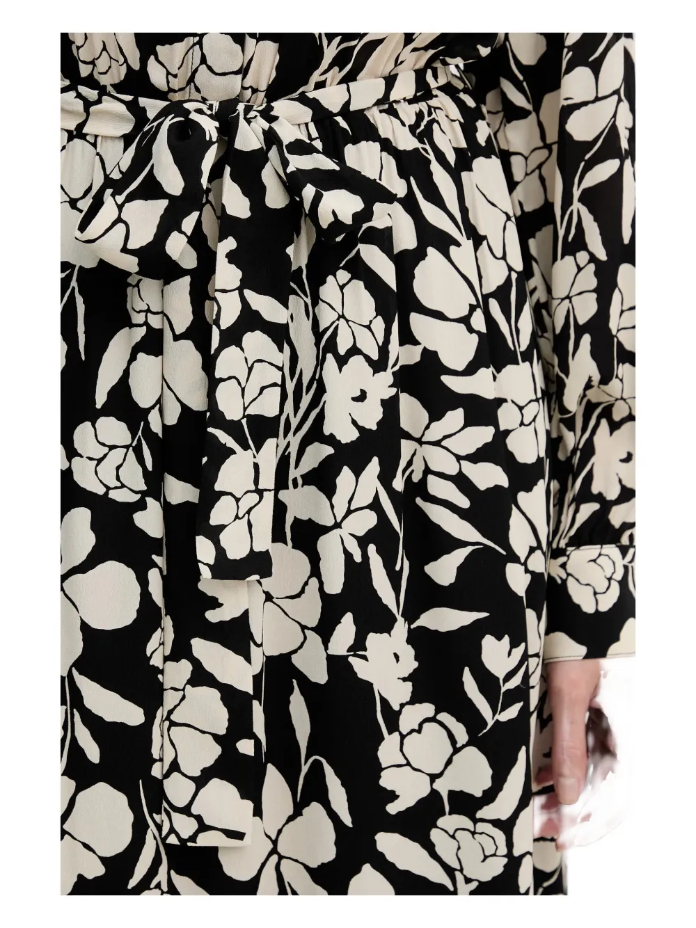 Черный цветочный принт, длинные рукава, завязка, манжеты на пуговицах, длина ниже колена