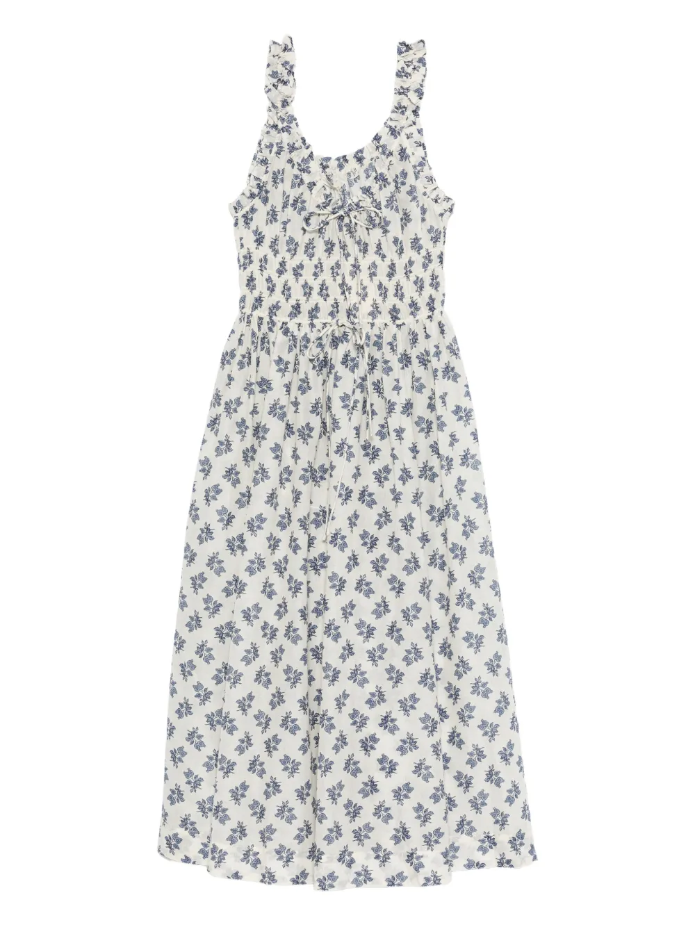 Платье с цветочным принтом и вырезом "лодочка" Dôen, белый