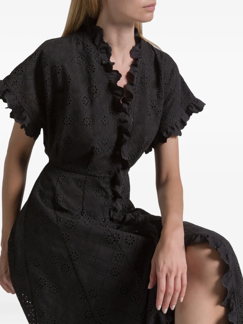 Платье с оборками и люверсами Alberta Ferretti, черный