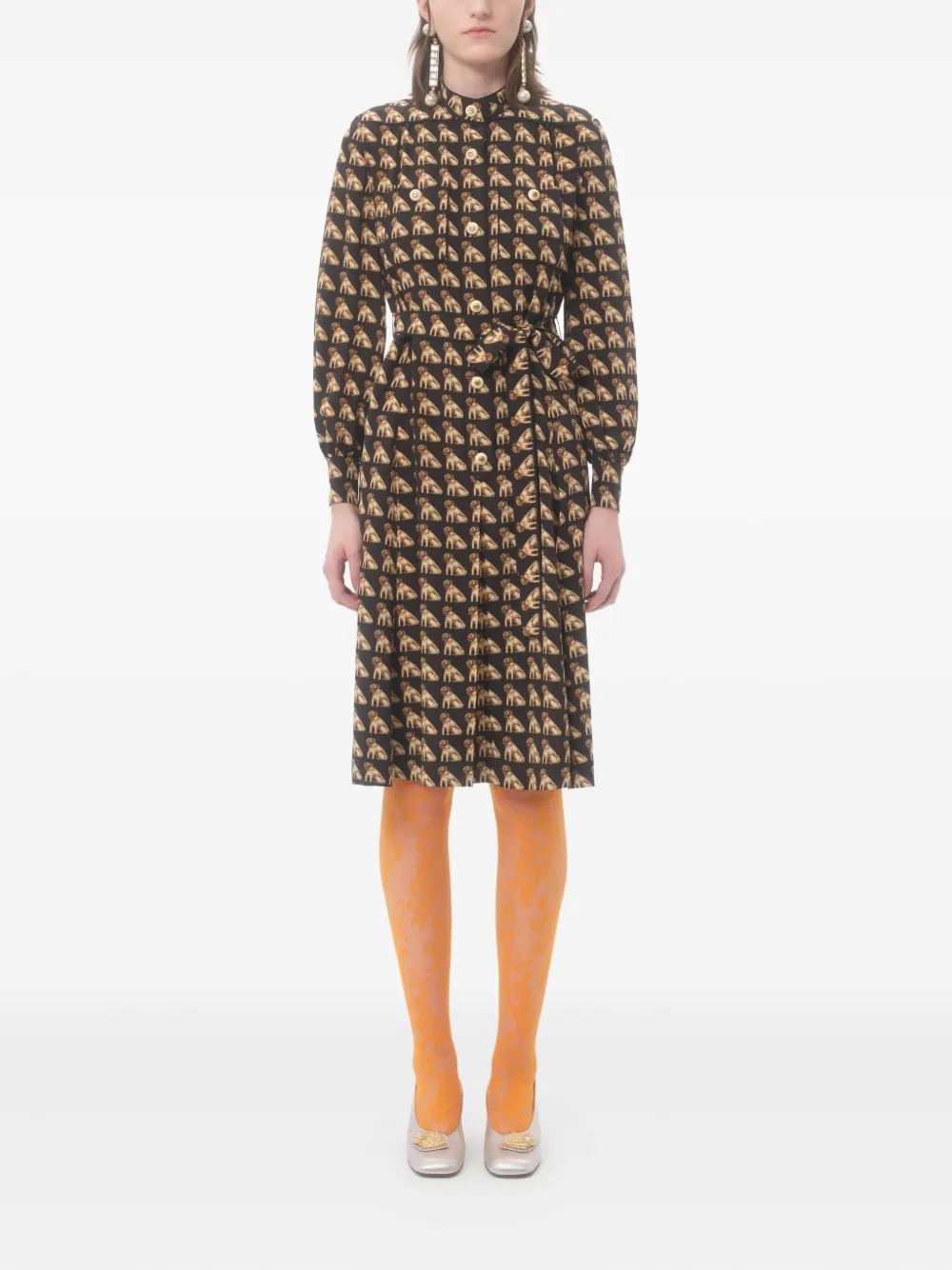 Платье миди с поясом и принтом Valentino Garavani, черный