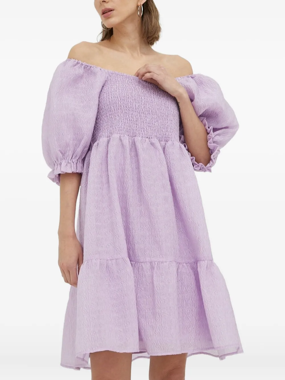 Ярусное платье мини с объемными рукавами Bruuns Bazaar, фиолетовый
