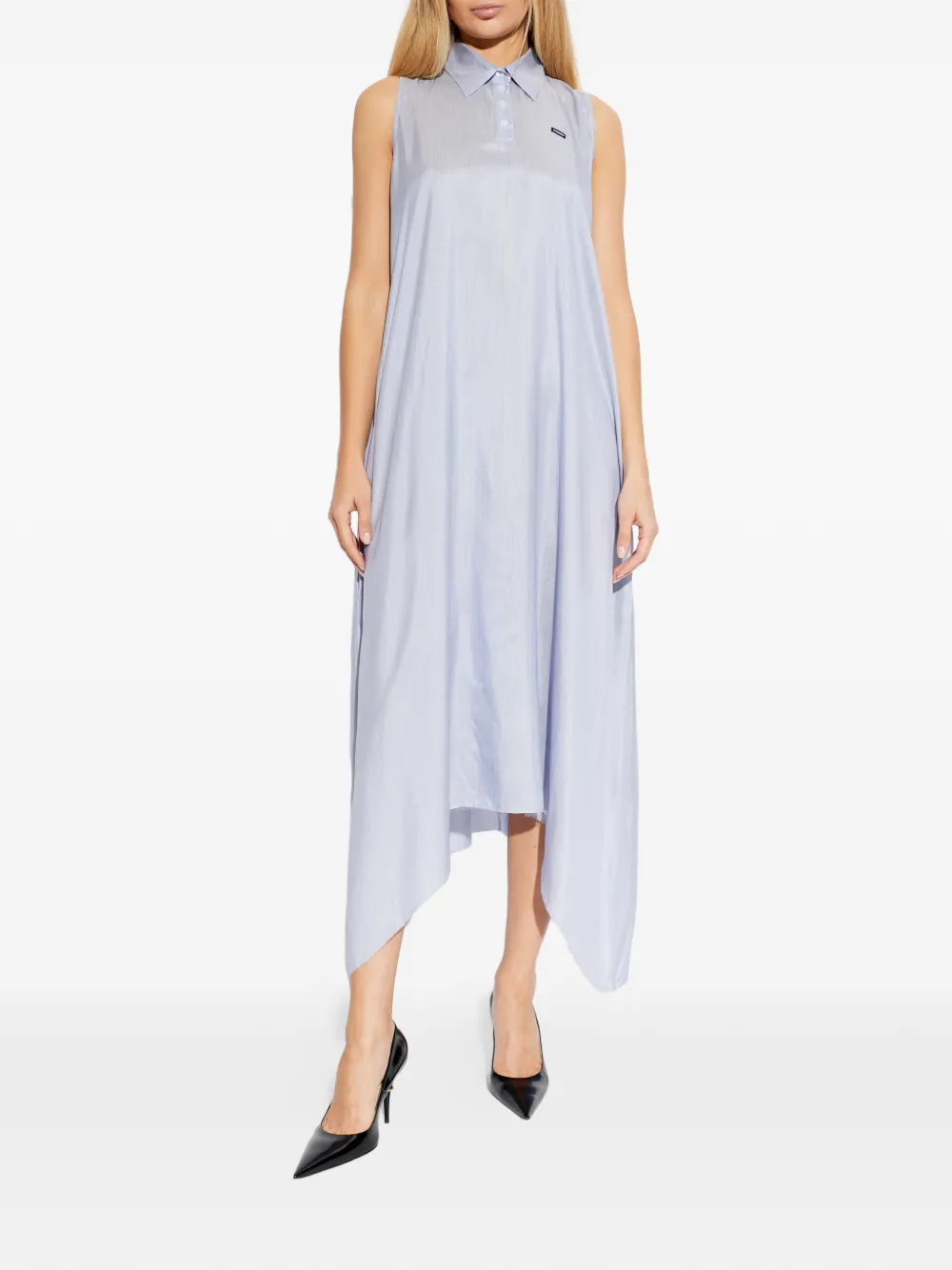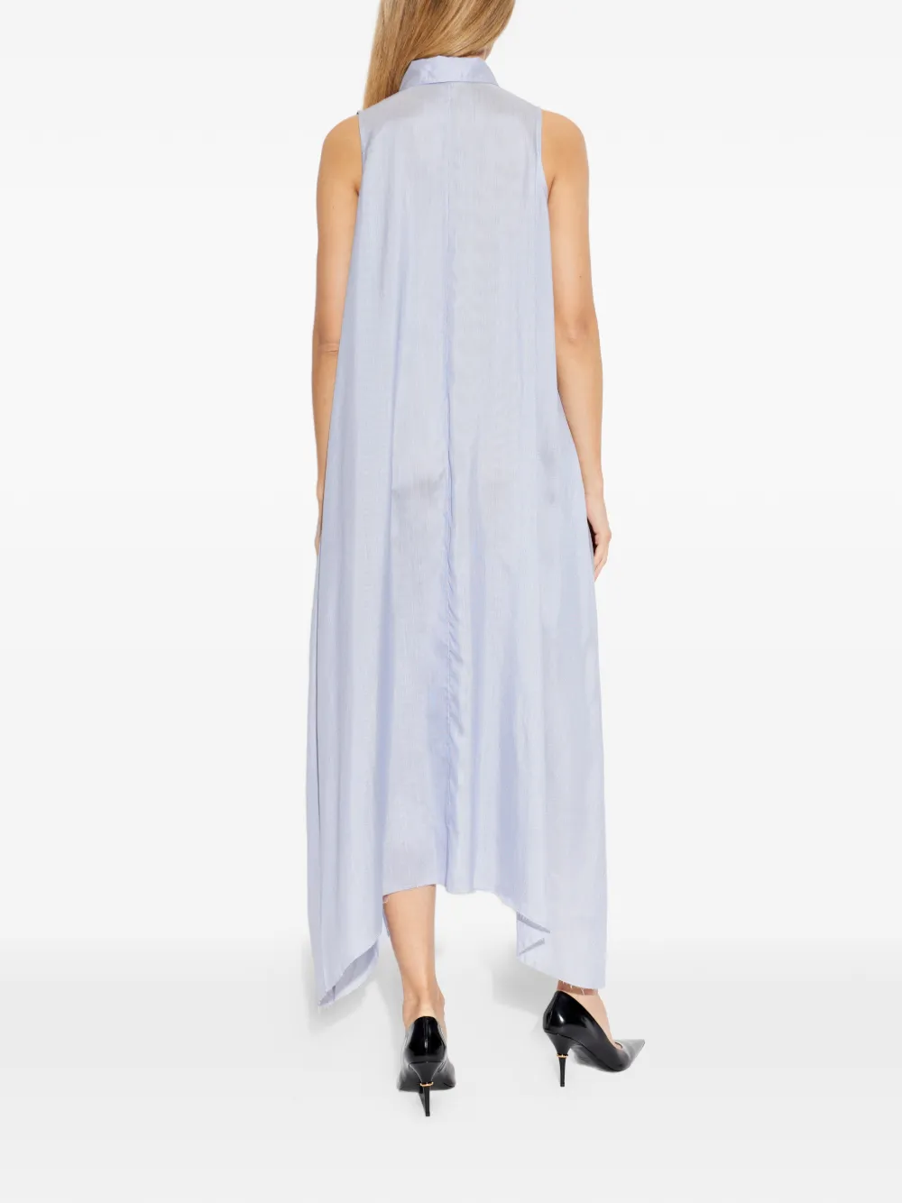 Синий топ без рукавов с классическим воротником, асимметричным подолом и застежкой на пуговицы