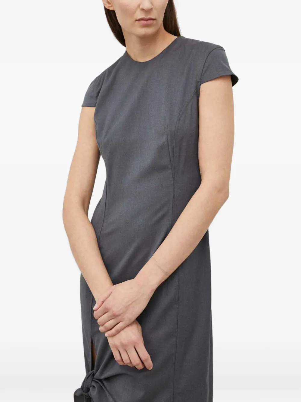 Серый топ с круглым вырезом, короткими рукавами, разрезом спереди и узлом