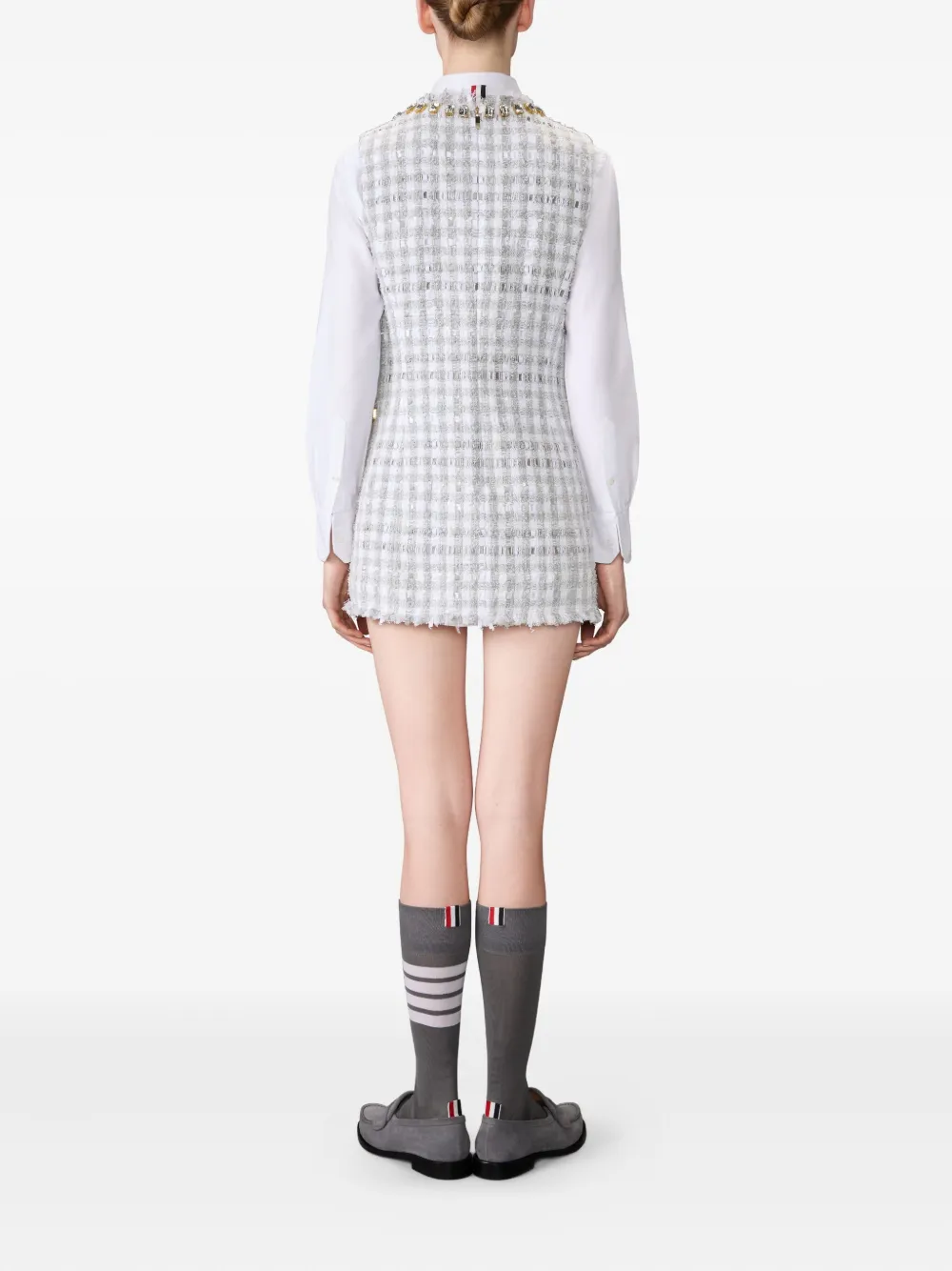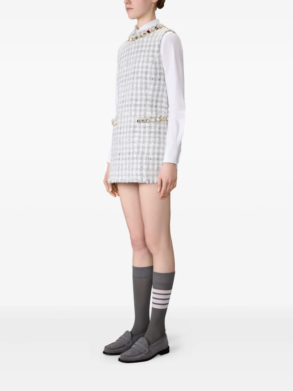 Твидовое платье с кристаллами Thom Browne, серый