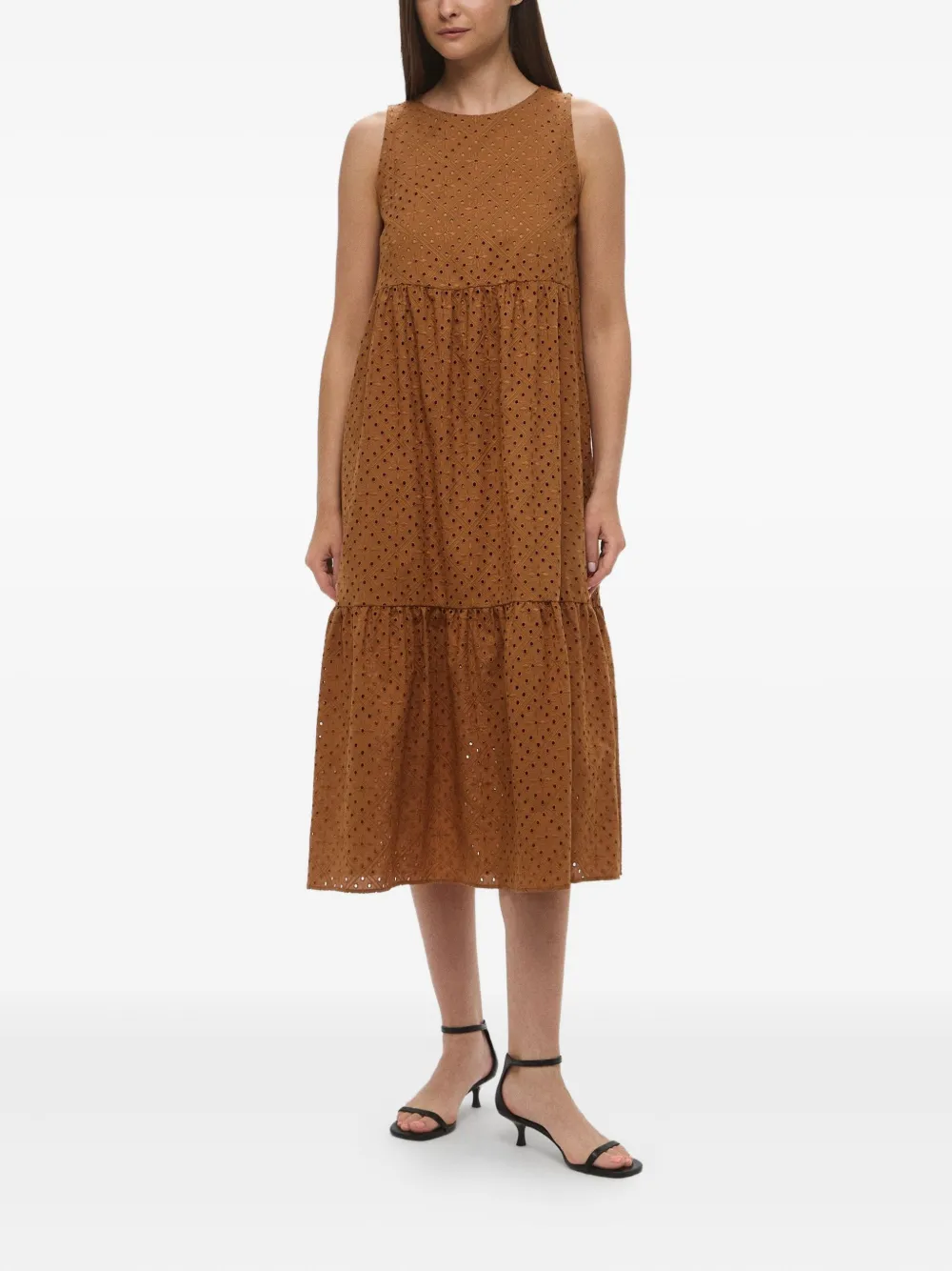 Платье с вышивкой "ришелье" и ярусами Marella, коричневый