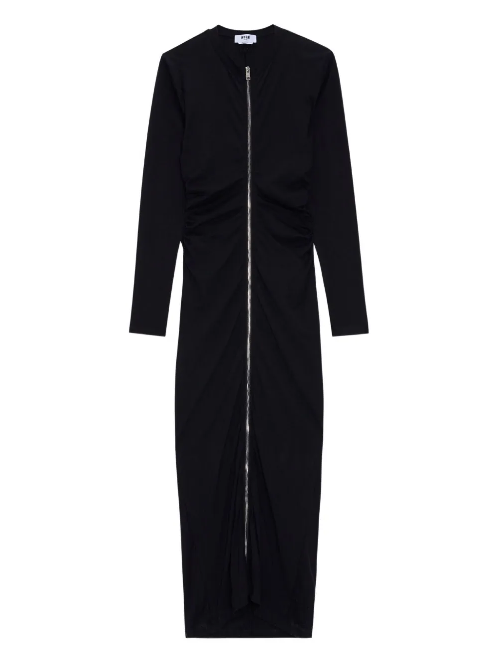 Макси-платье с молнией спереди и присборенной отделкой Msgm, черный