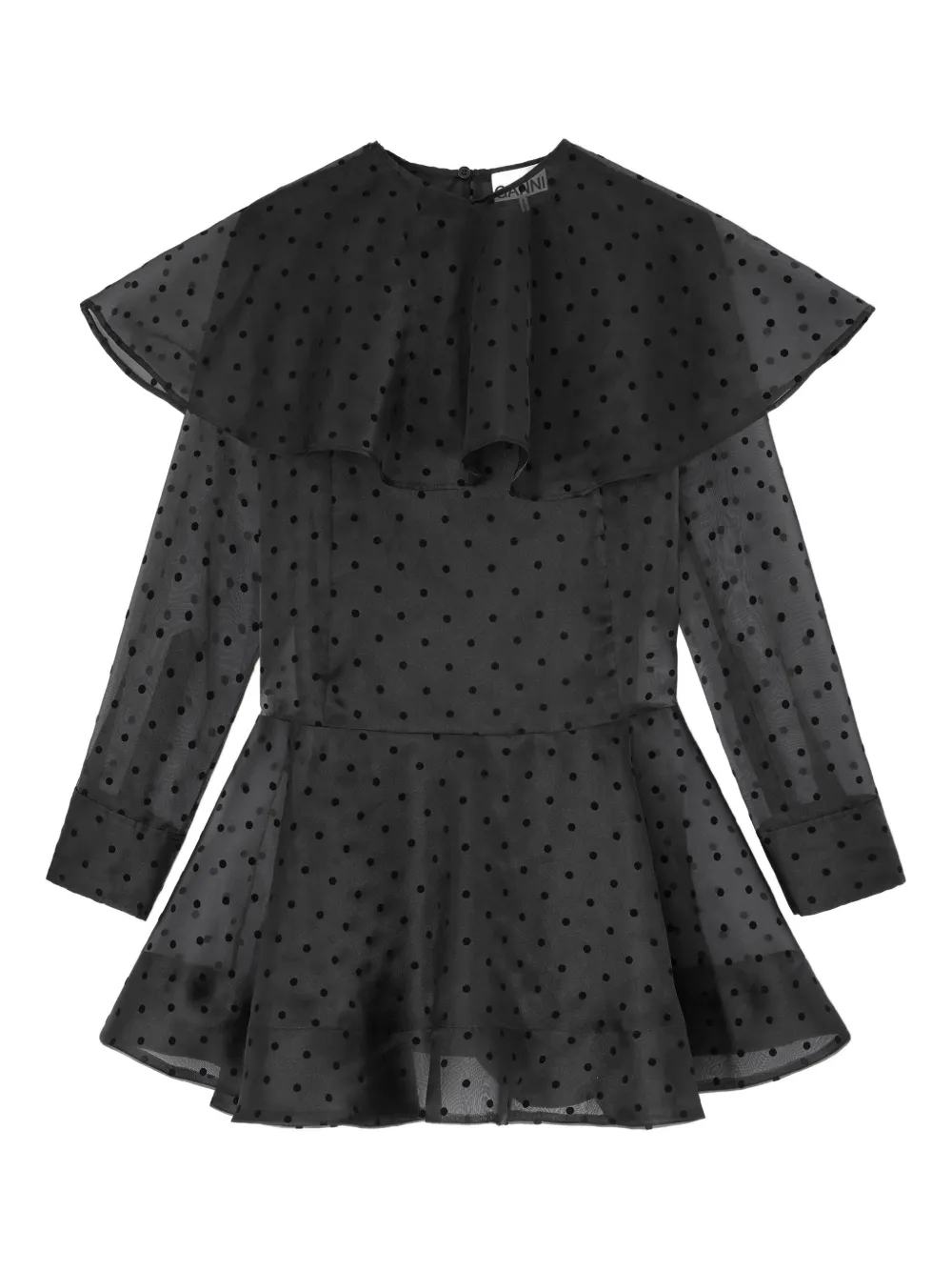 Платье мини с оборками и узором в горох Ganni, черный