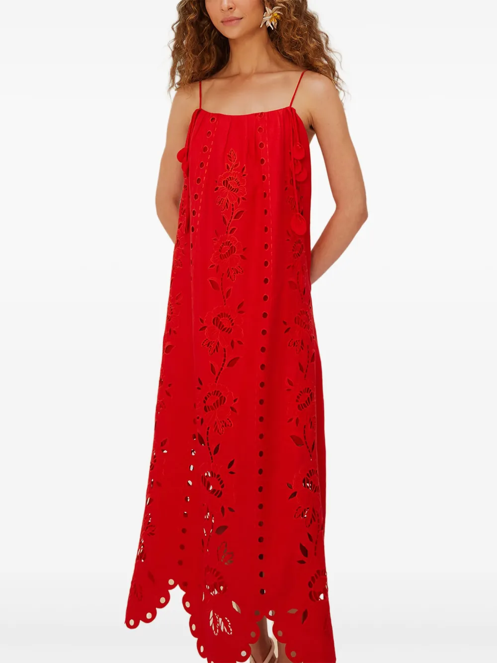 Платье миди с цветочной вышивкой Farm Rio, красный