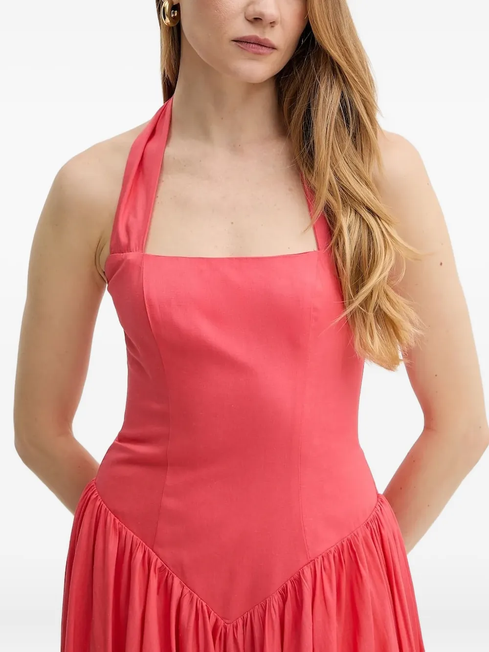 Платье миди с вырезом халтер и сборками Bardot, розовый