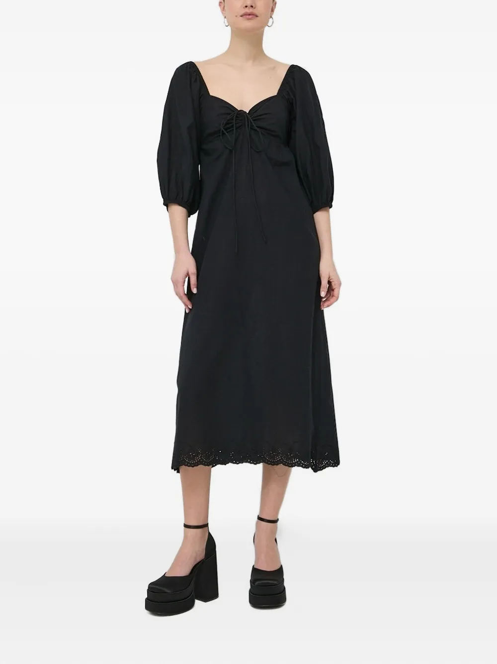 Платье миди с объемными рукавами Notes Du Nord, черный
