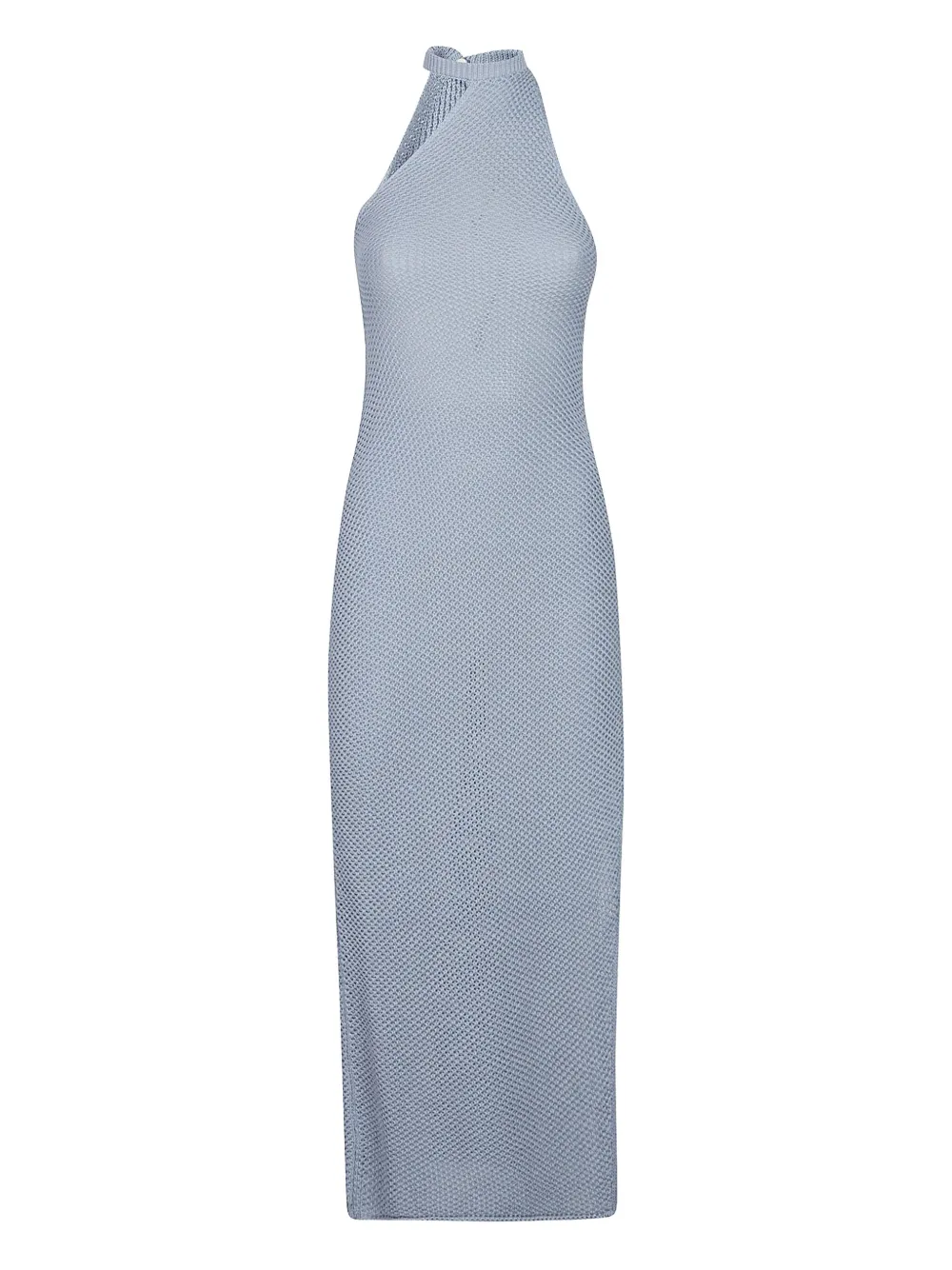 Вязаное миди-платье на бретельках через шею Canessa, синий