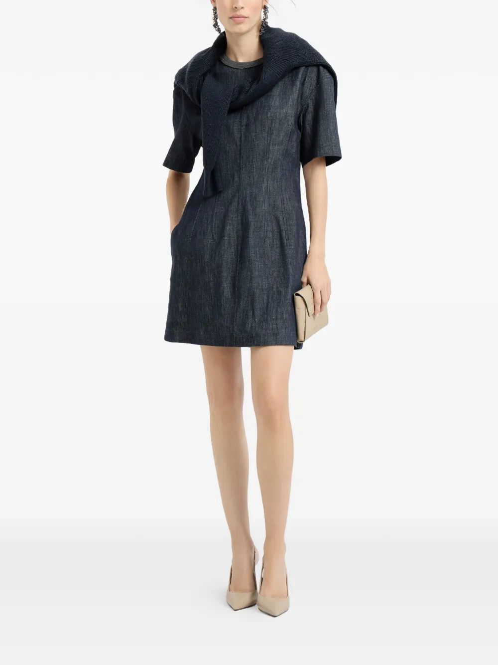 Мини-платье с эффектом денима Brunello Cucinelli, синий