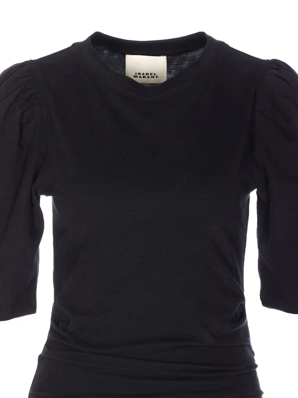 Черная футболка с круглым вырезом и объемными короткими рукавами