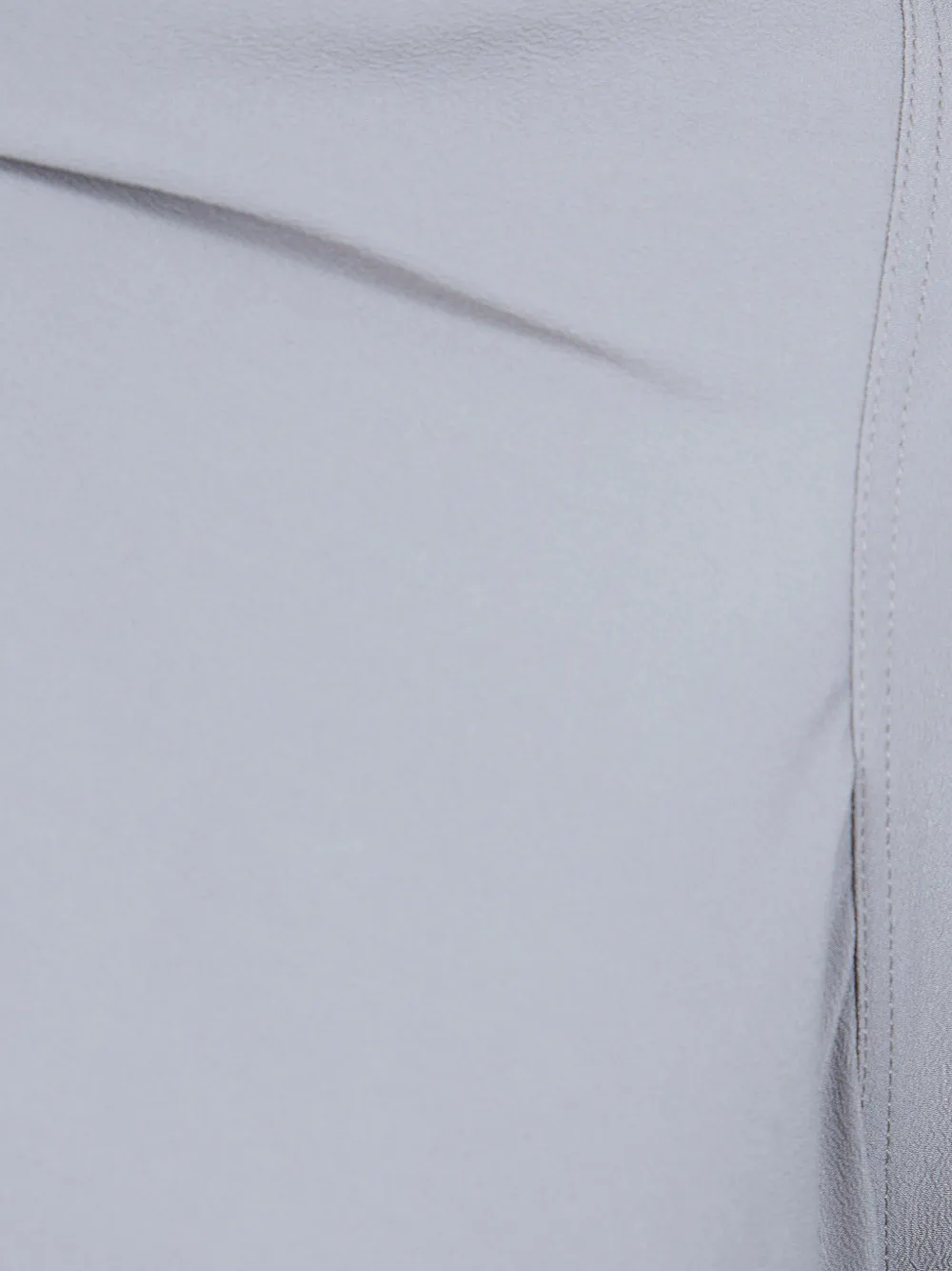 Эвкалиптовый цвет, драпировка, короткие рукава, асимметричный подол