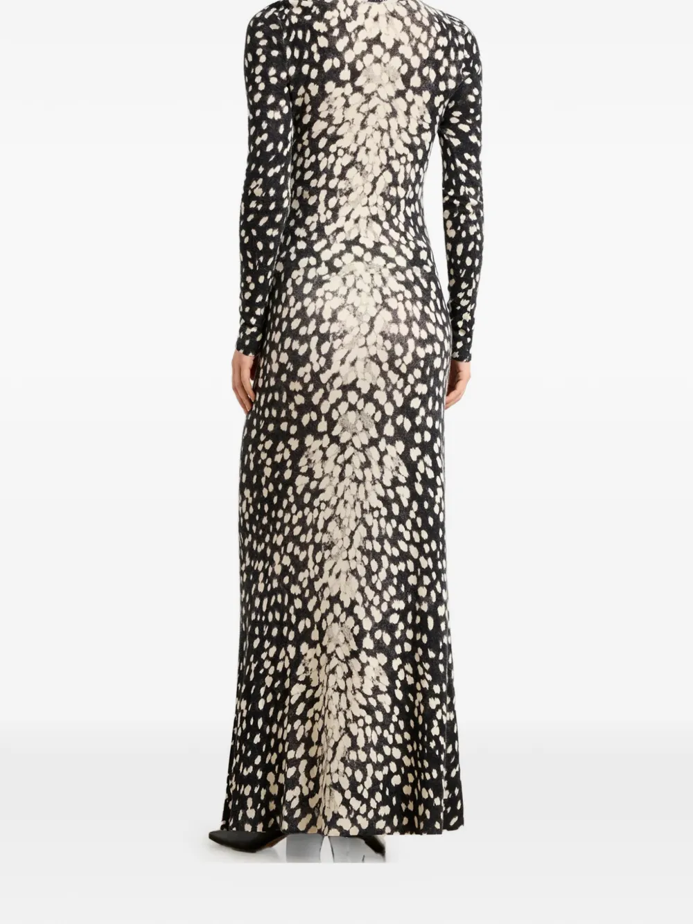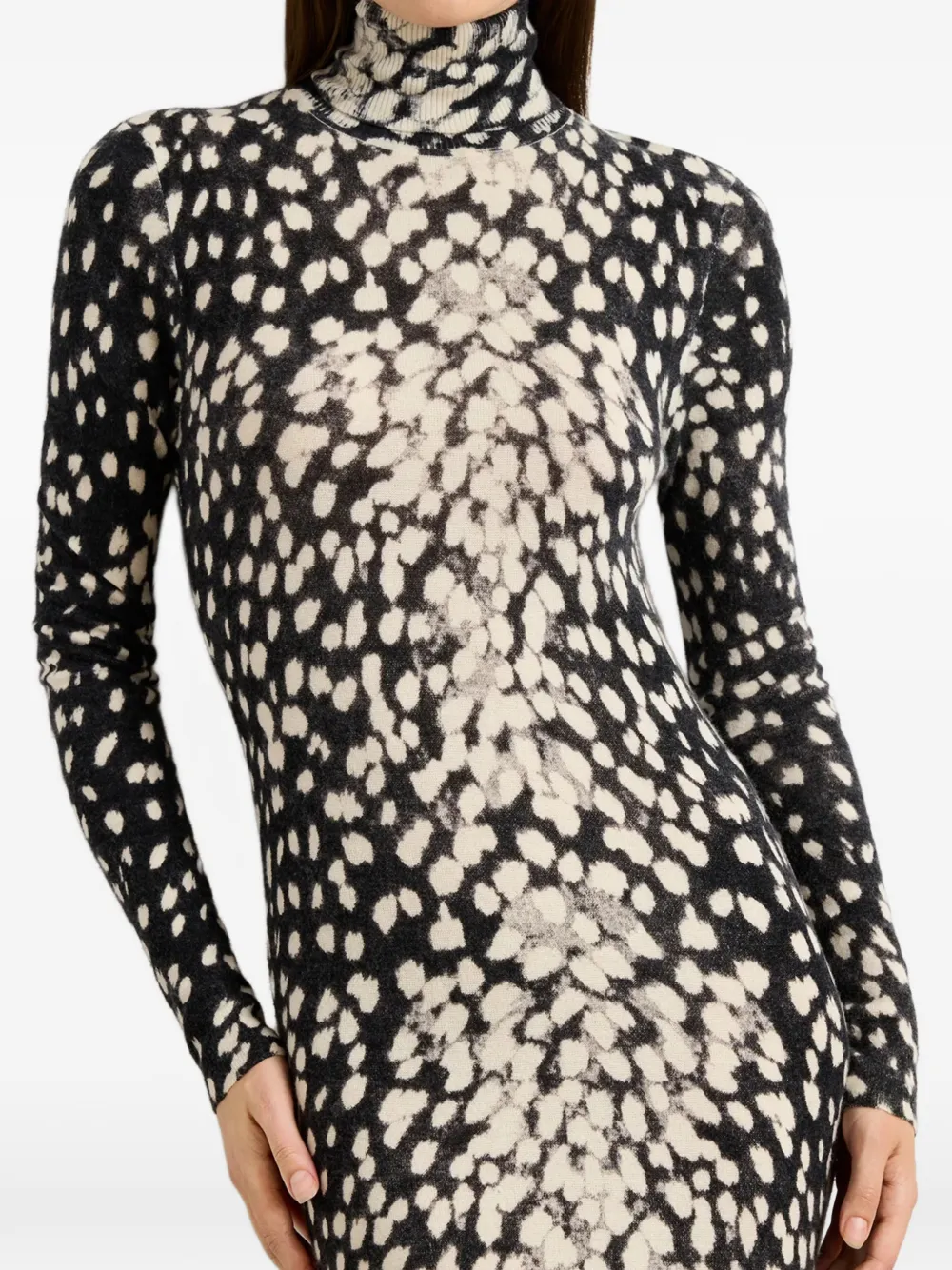Черно-белая водолазка с длинными рукавами, узор снежного барса по всей поверхности, длина до щиколотки, прямой низ