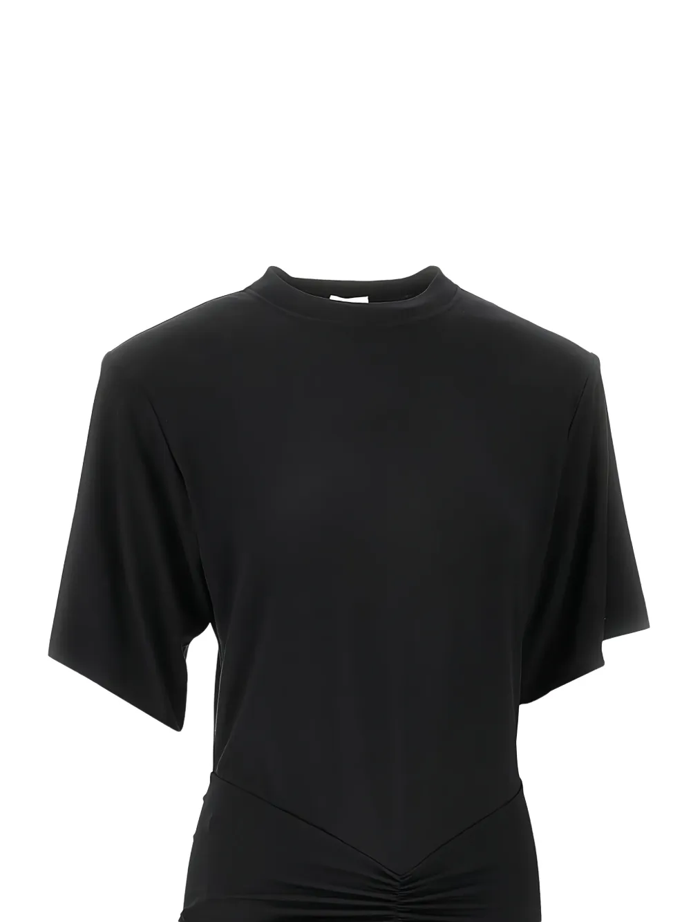 Черное платье средней длины с короткими рукавами и драпировкой