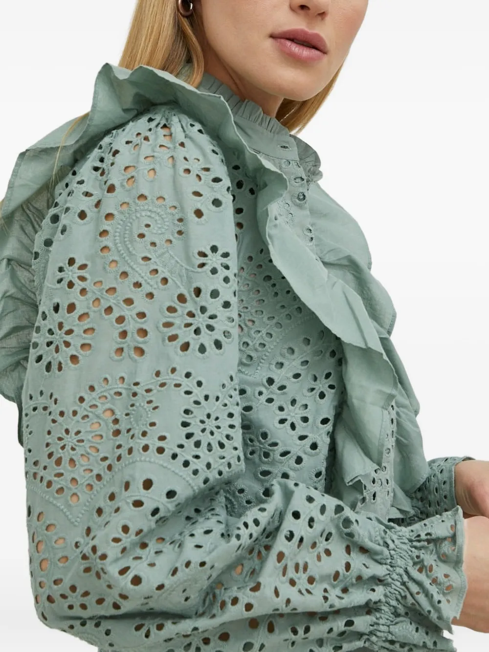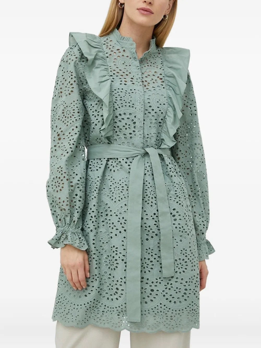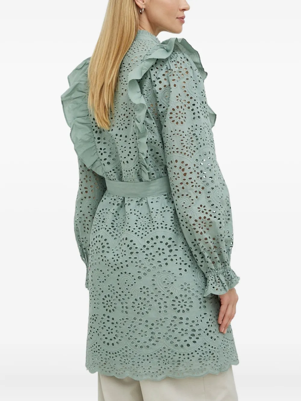 Платье мини с оборками и вышивкой Bruuns Bazaar, зеленый