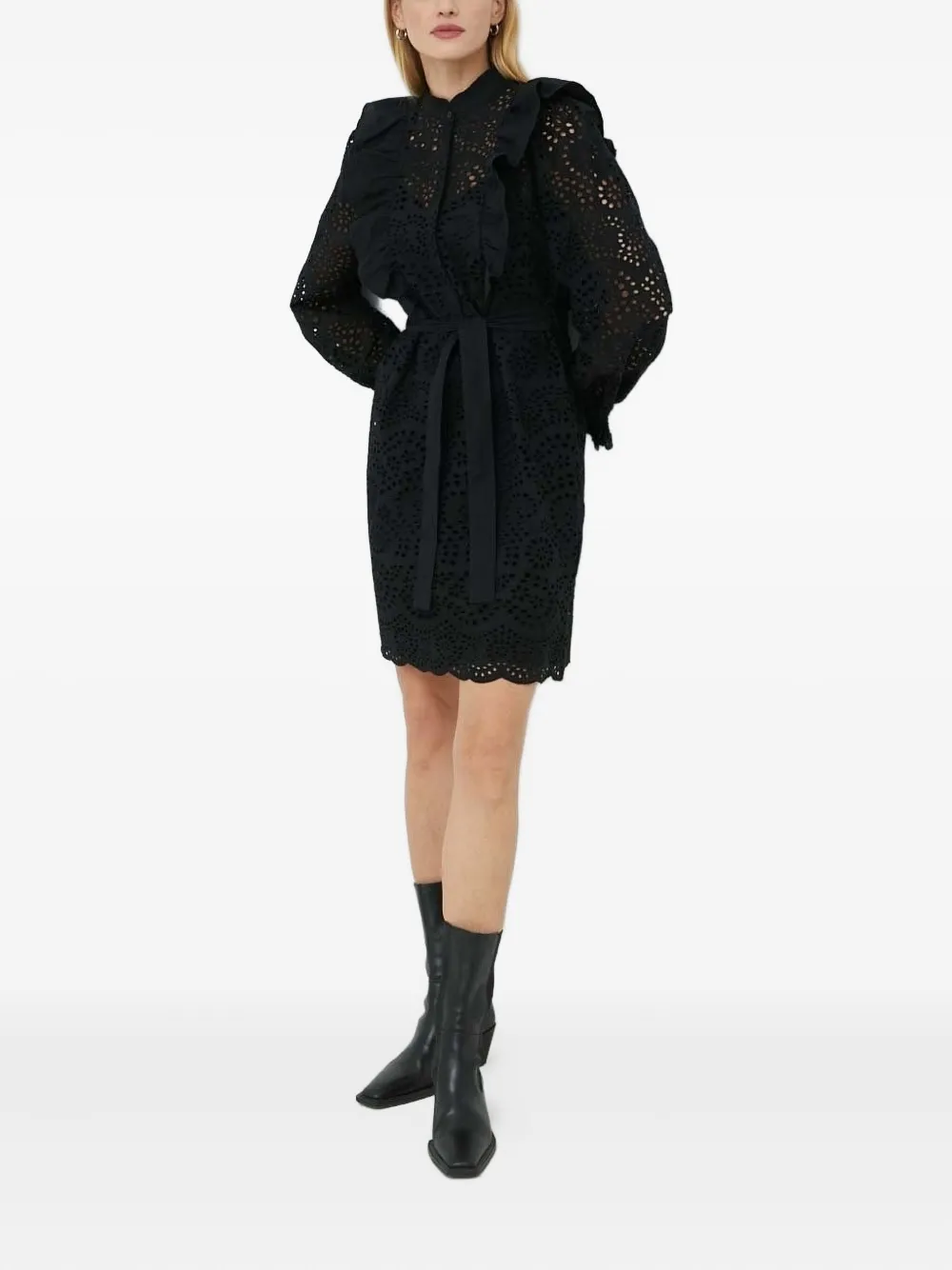 Платье мини с оборками и вышивкой Bruuns Bazaar, черный