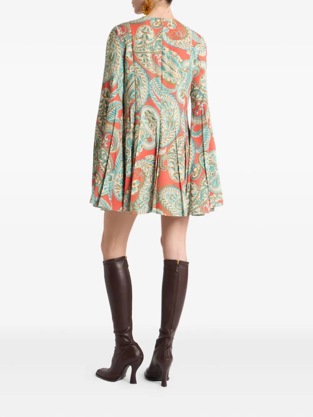 Плиссированное платье мини с узором пейсли Etro, оранжевый 159 405₽
