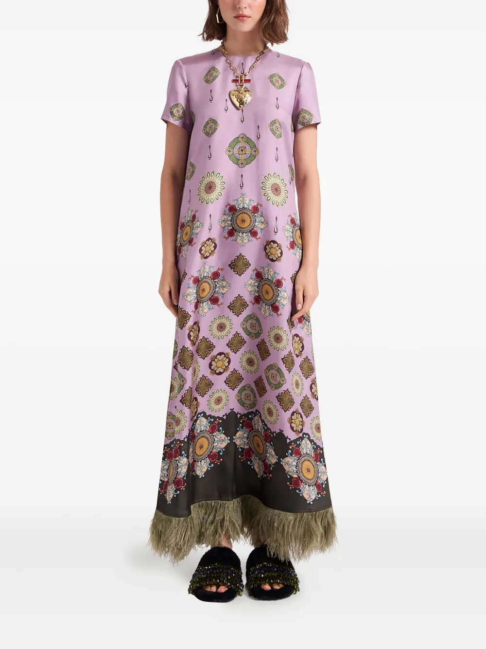 Платье макси Swing с перьями La Doublej, розовый 101 322₽
