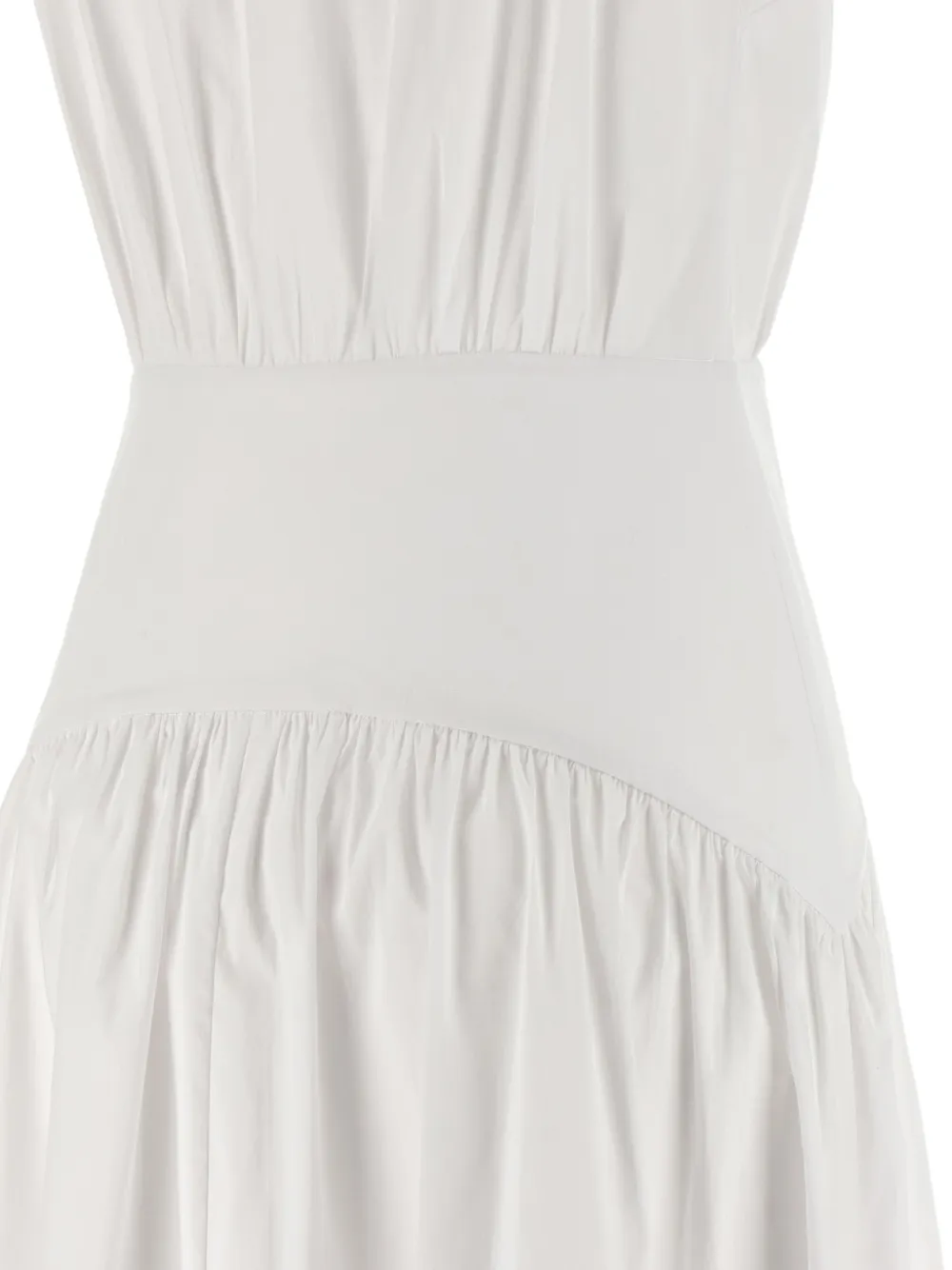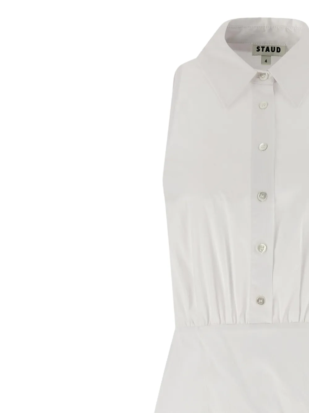 Белый воротник, застежка на пуговицы спереди, сборка на талии, широкая юбка, без рукавов