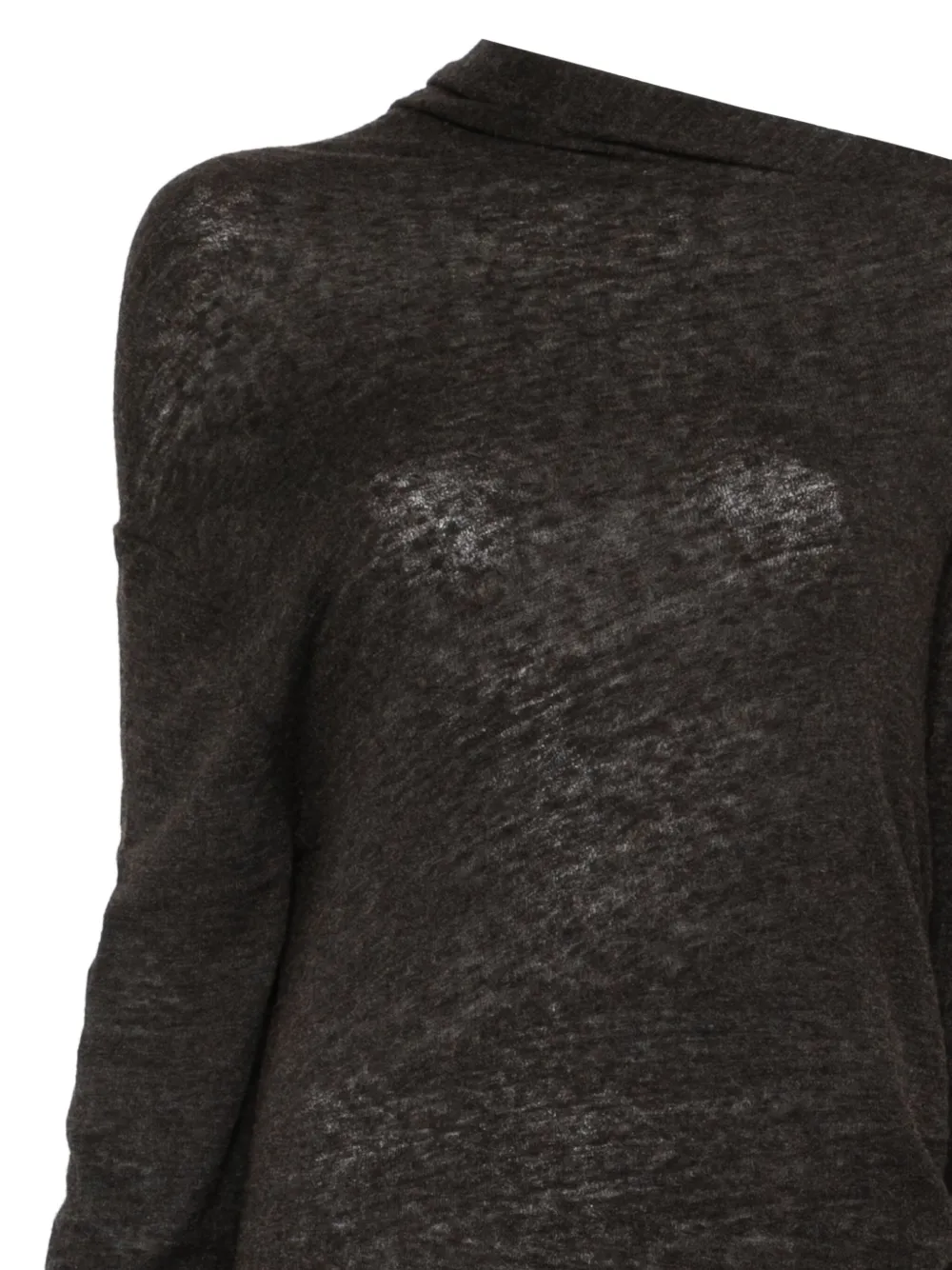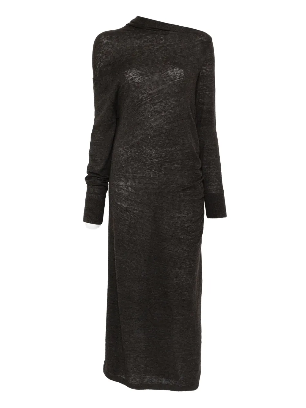 Коричневое платье миди с драпированным воротником и длинными рукавами