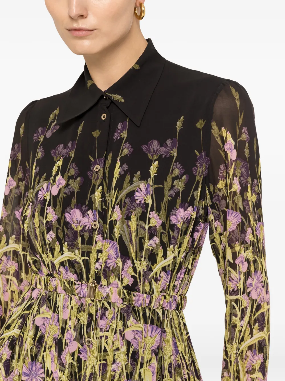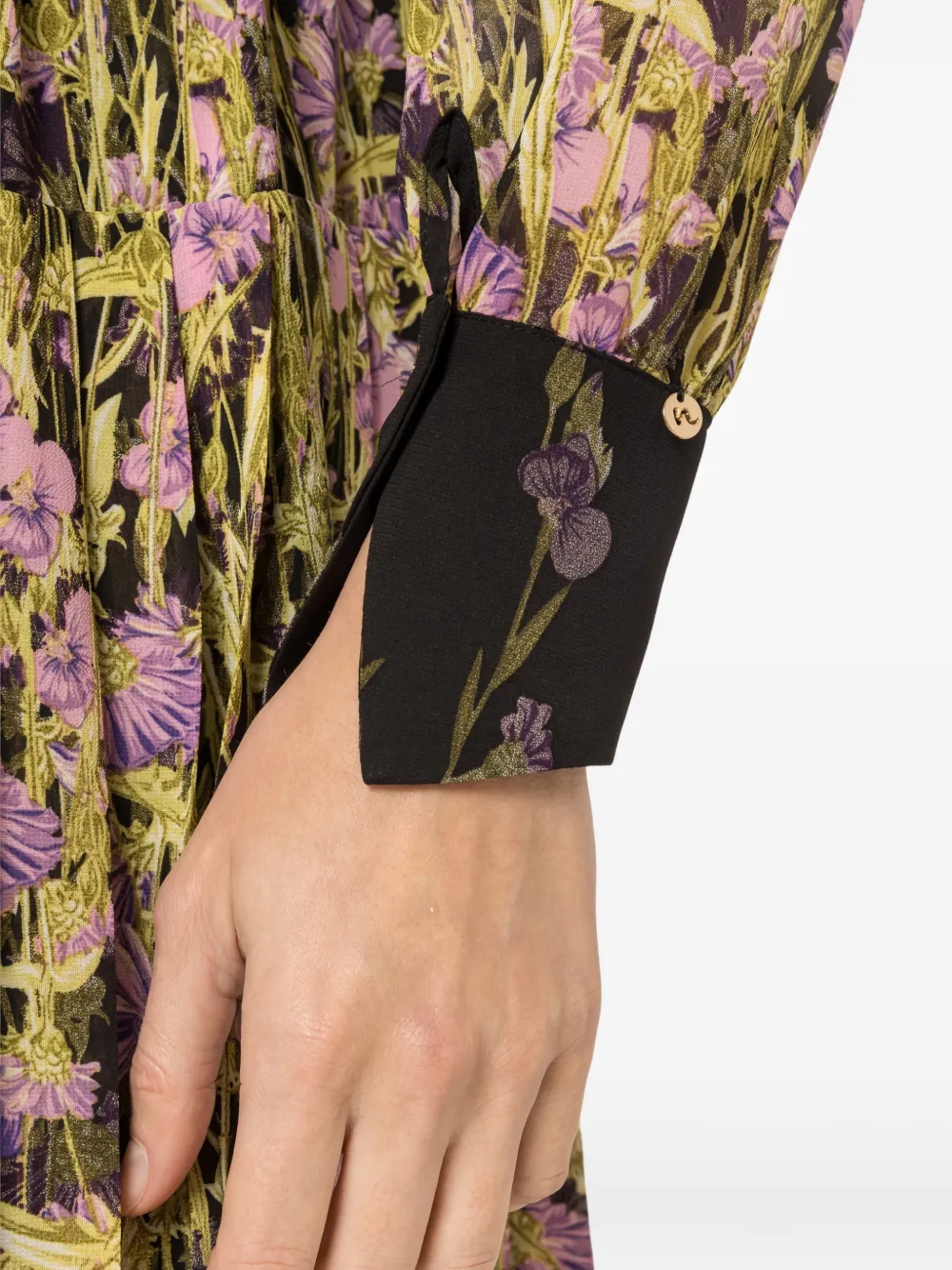 Черная и желтая плиссированная юбка, длинные рукава, манжеты на пуговицах, длина миди, воротник-рубашка