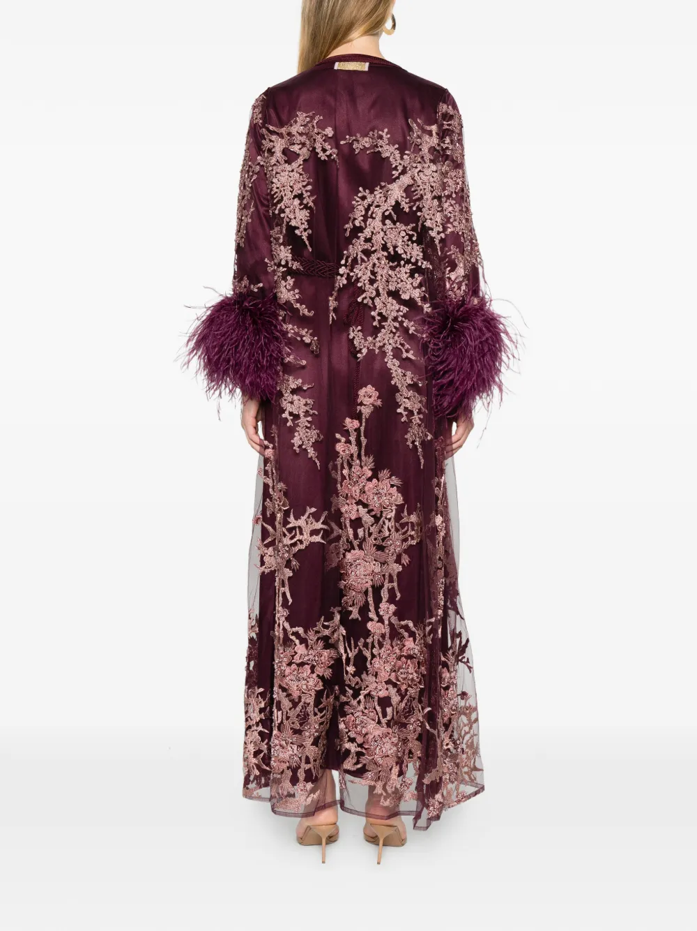Платье с перьями и вышивкой Reem Al Dhaheri, красный