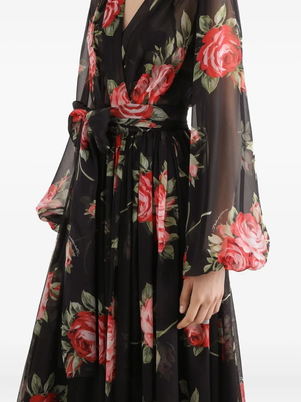 Платье миди с цветочным принтом Dolce & Gabbana, черный