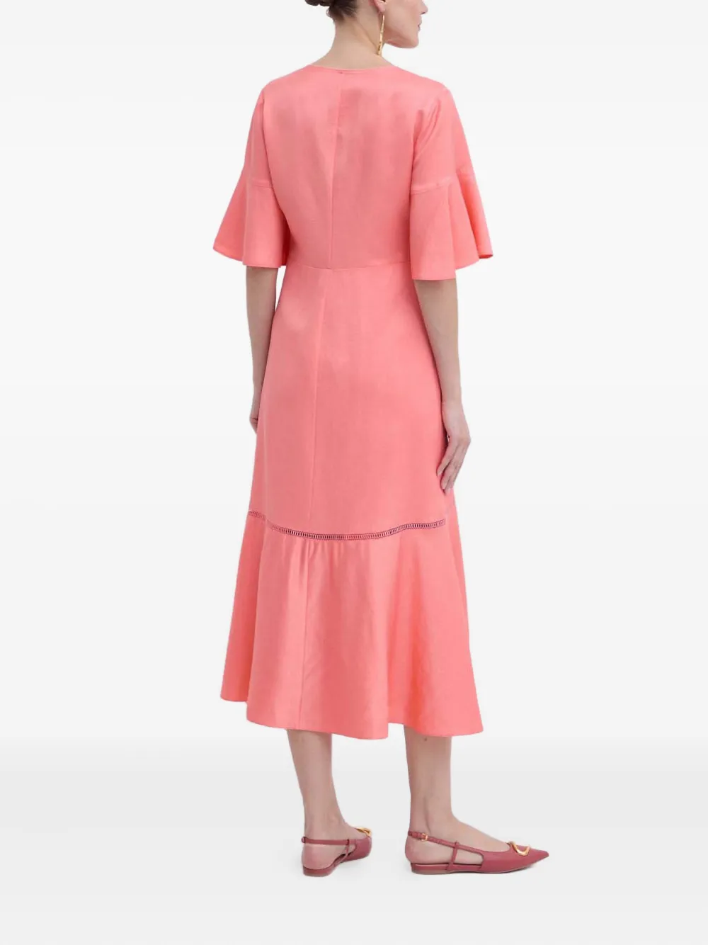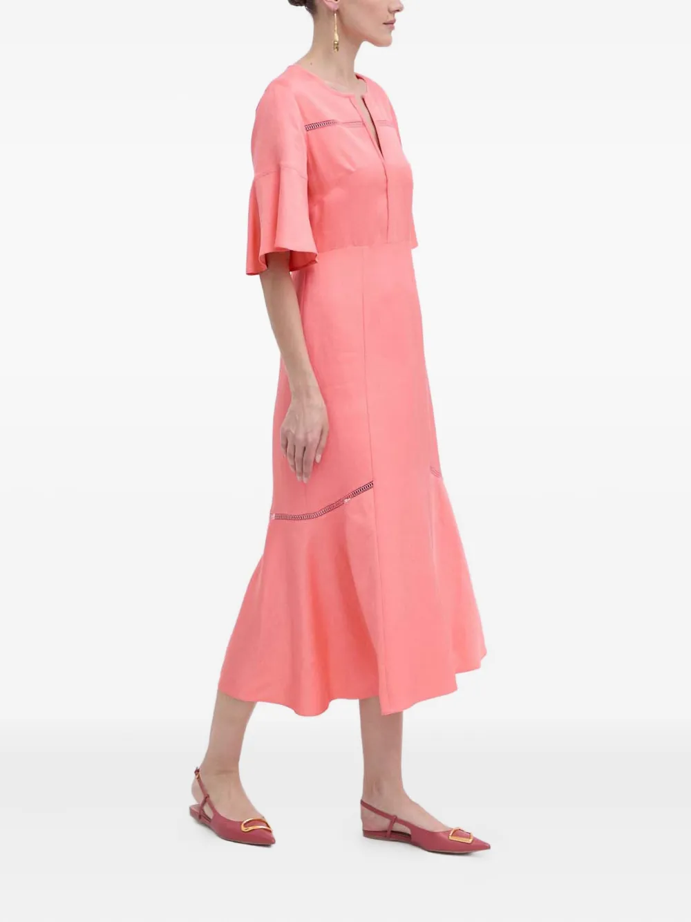 Кораллово-розовый рукава-клеш V-образный вырез вставки с вышивкой юбка А-силуэта