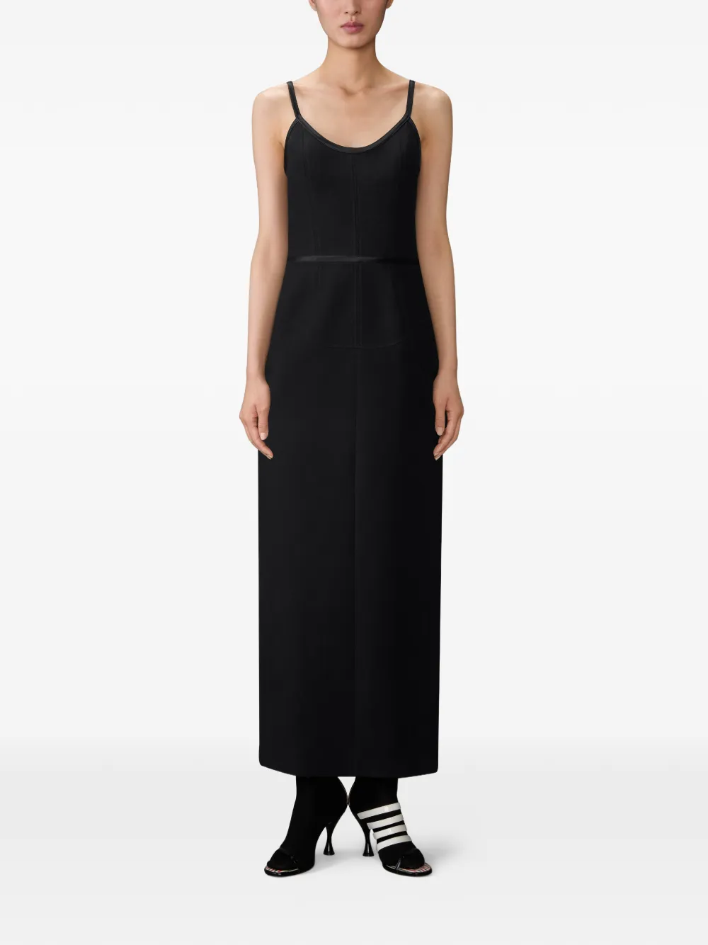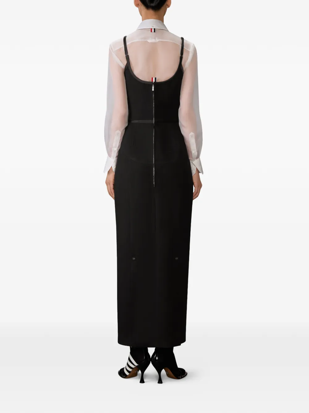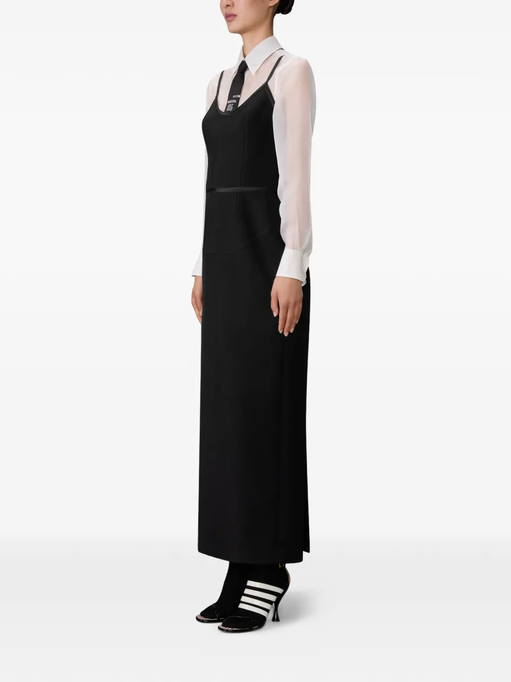 Макси-платье с отделкой из сатина Thom Browne, черный