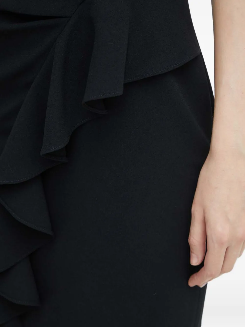 Черное платье на одно плечо, с чокером, оборками, без рукавов, с потайной застежкой-молнией