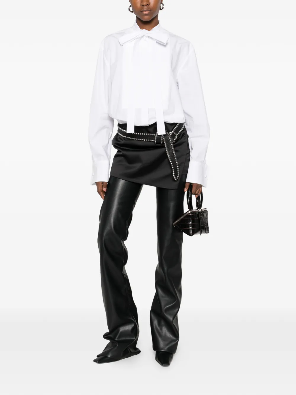 Белая и черная блузка с галстуком на шее, длинные рукава, отделка манжет