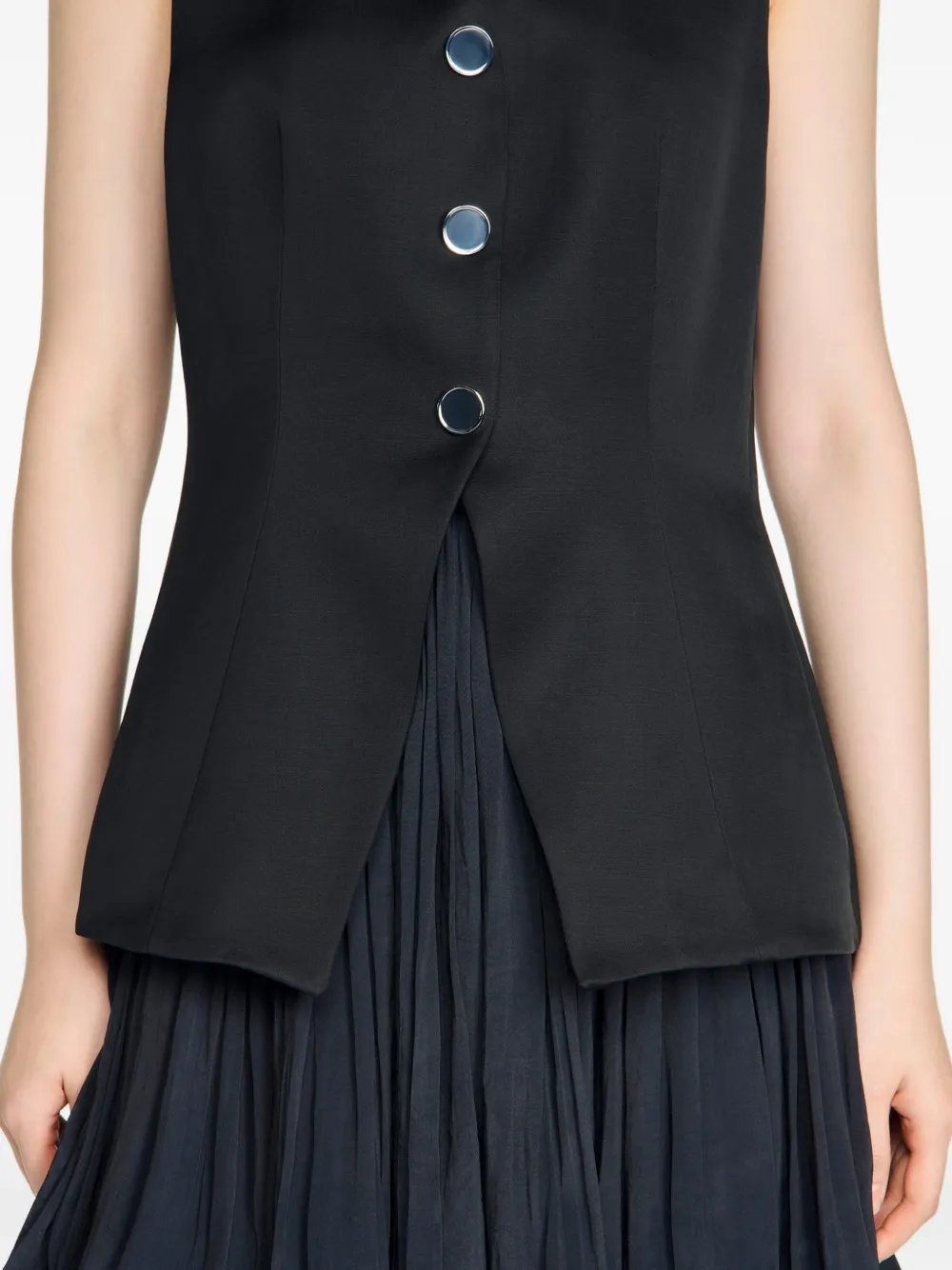 Слое́ное платье без рукавов Sandro, черный 47 890₽