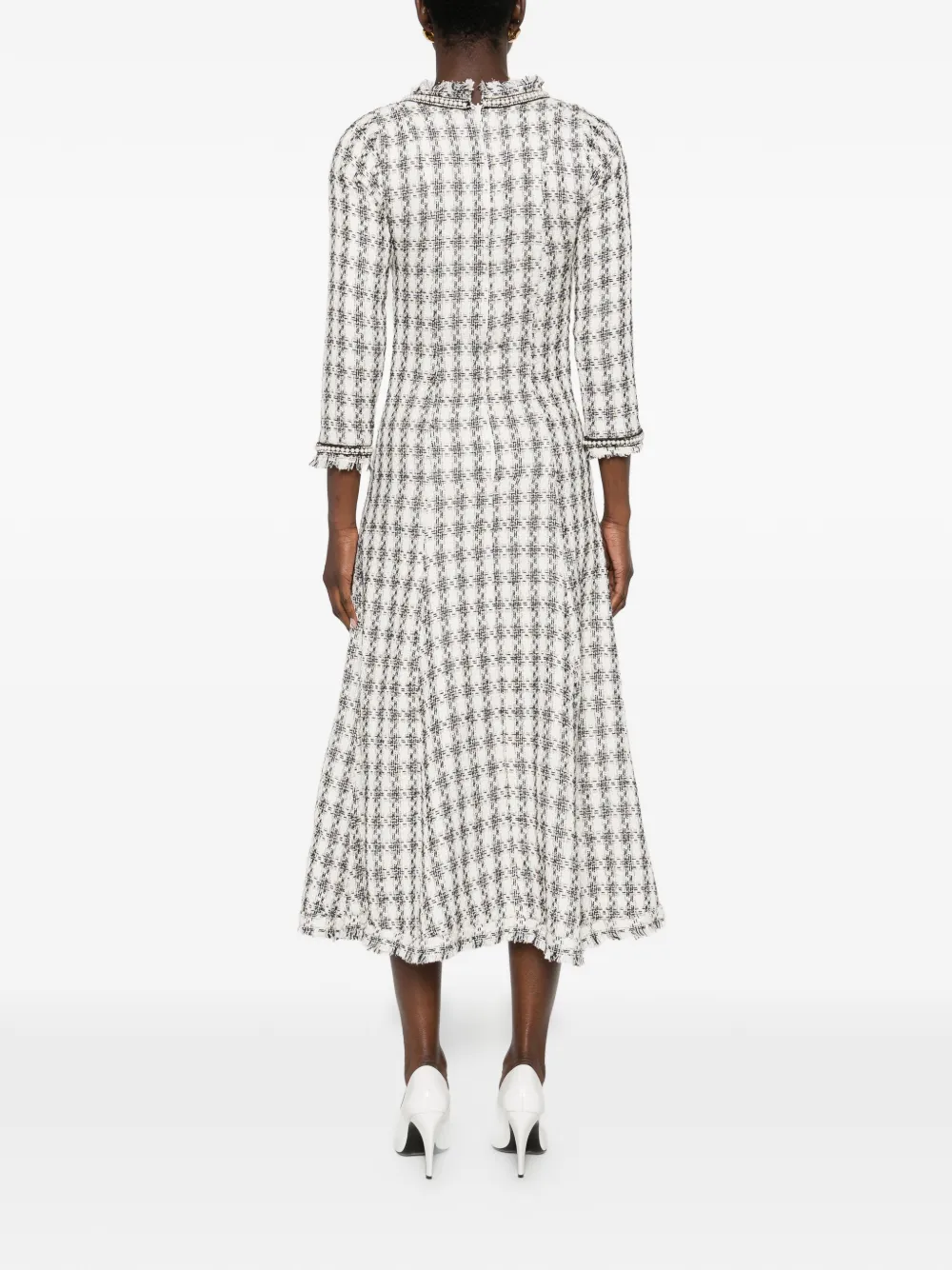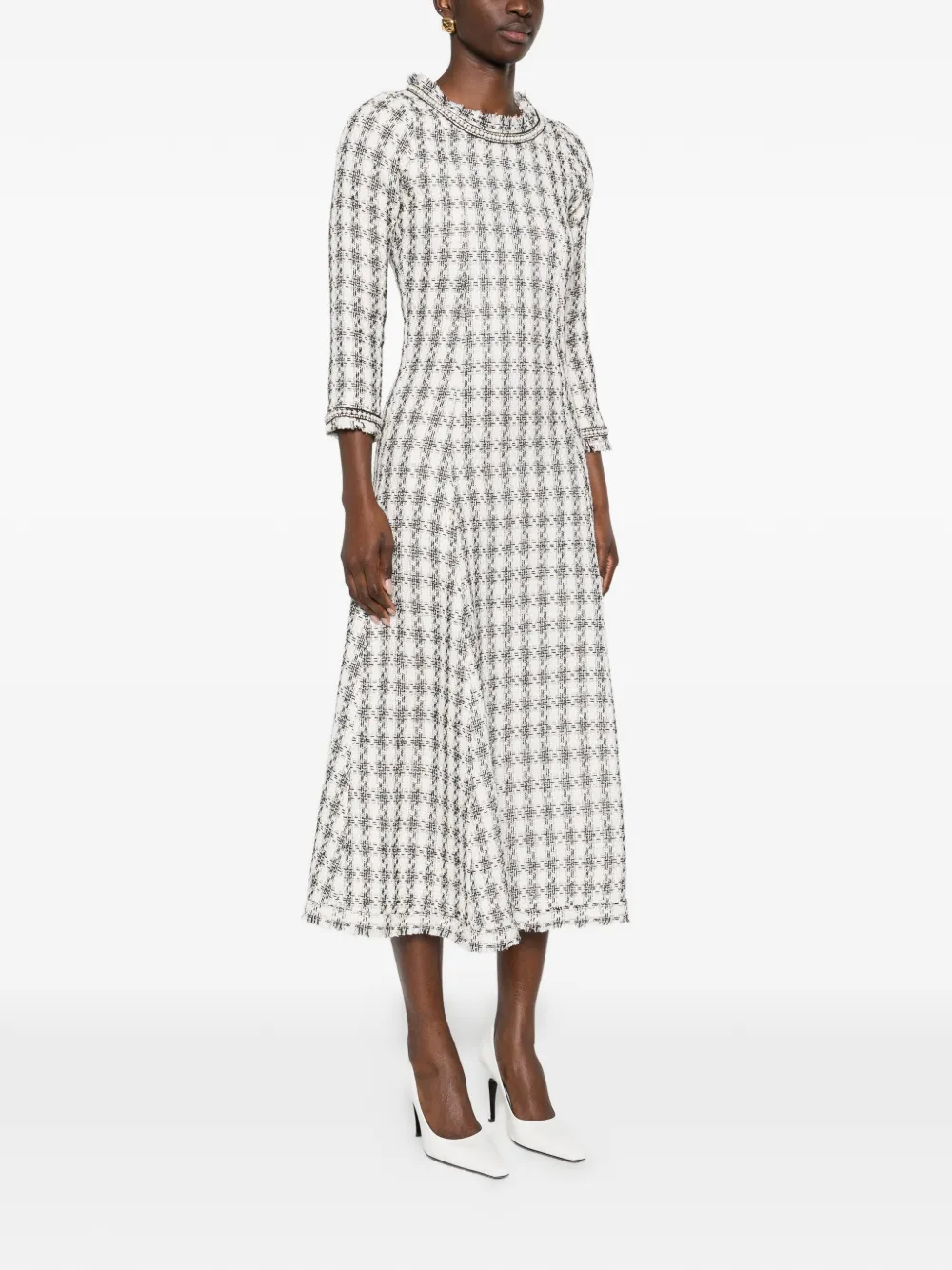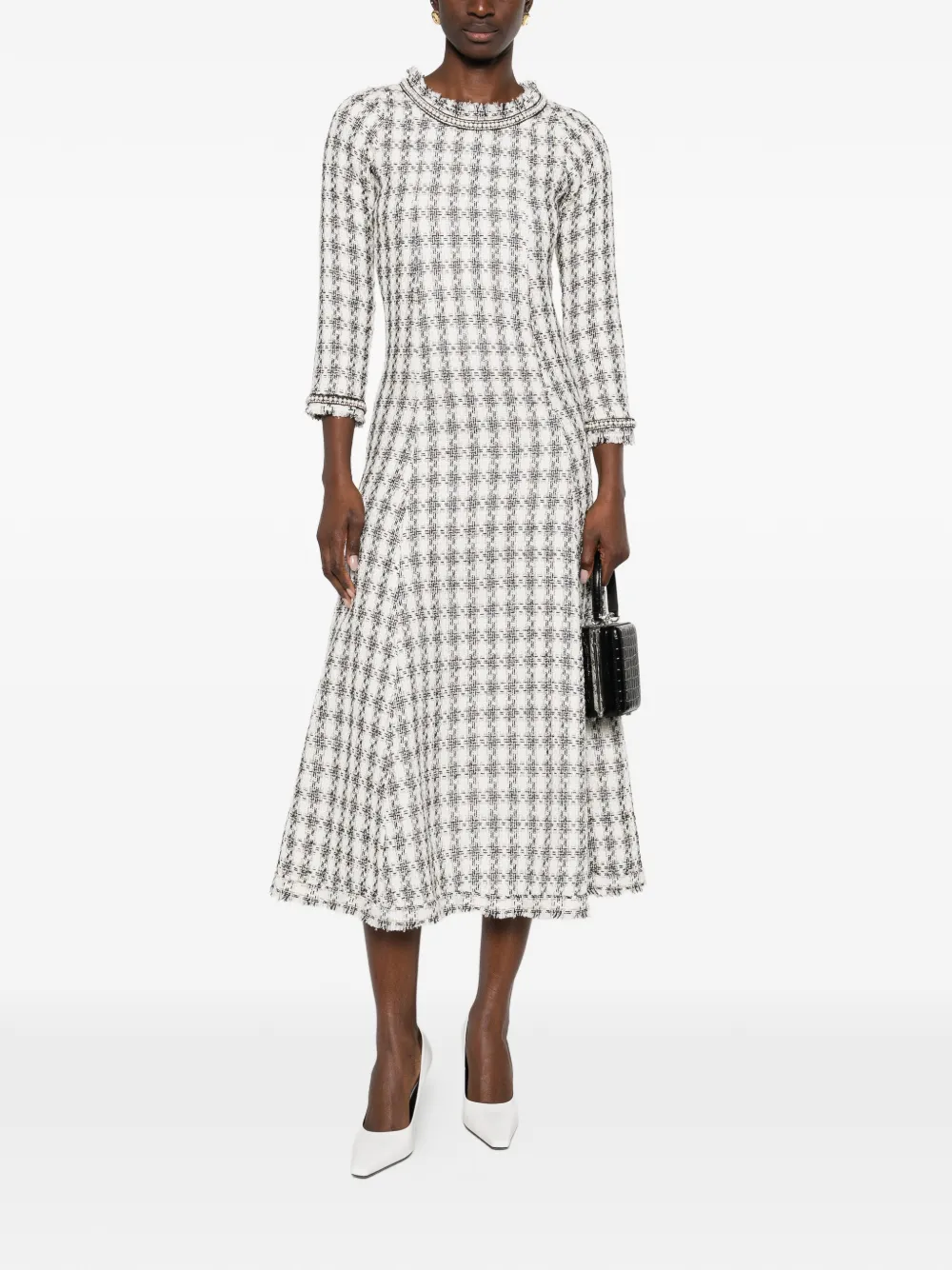 Клетчатое украшенное платье миди Miau By Clara Rotescu, белый