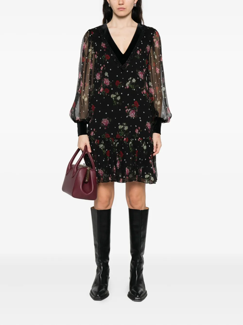 Платье мини в горох Nissa, черный