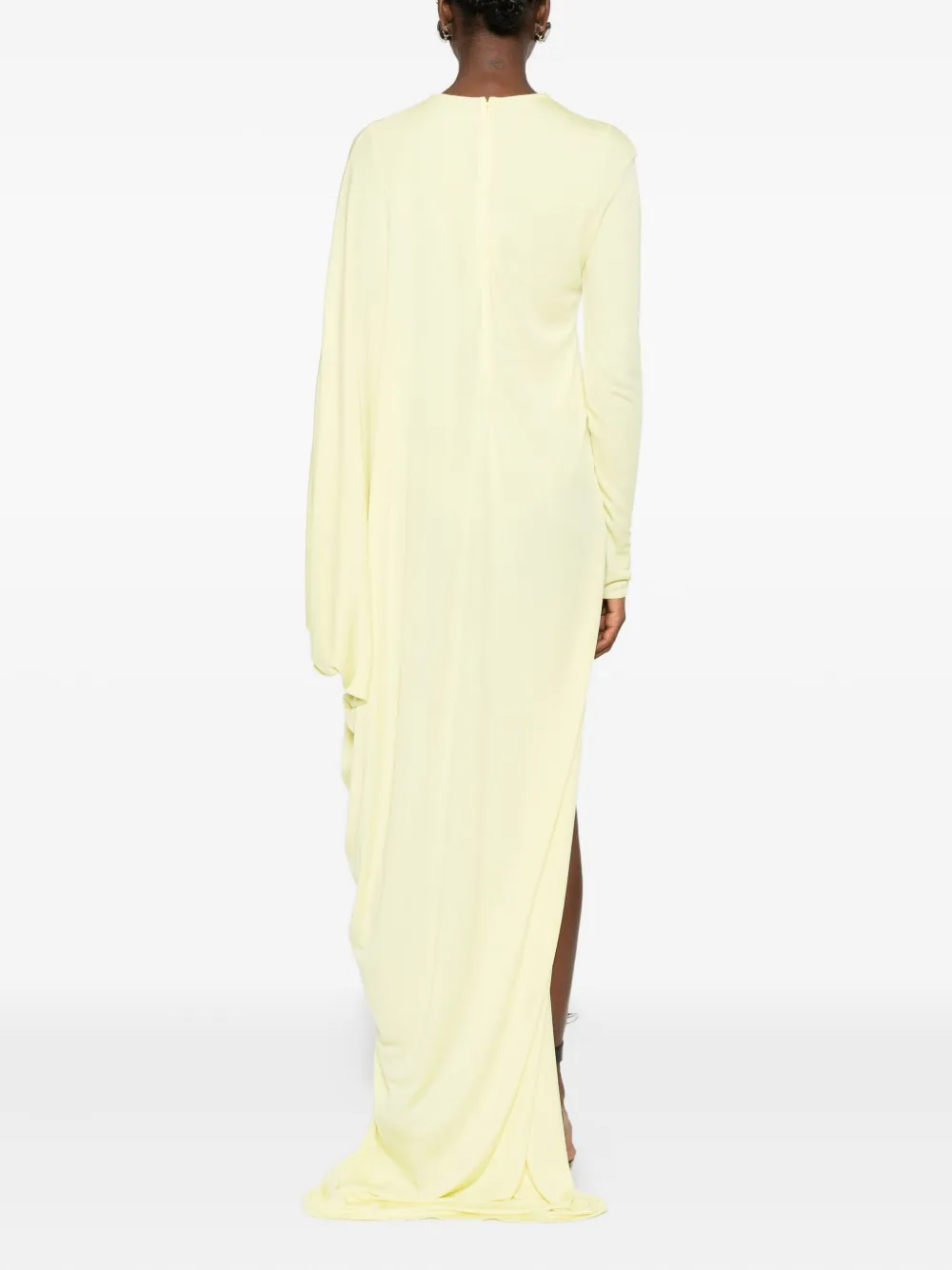 Бледно-желтый длинные рукава боковой разрез круглый вырез асимметричный подол