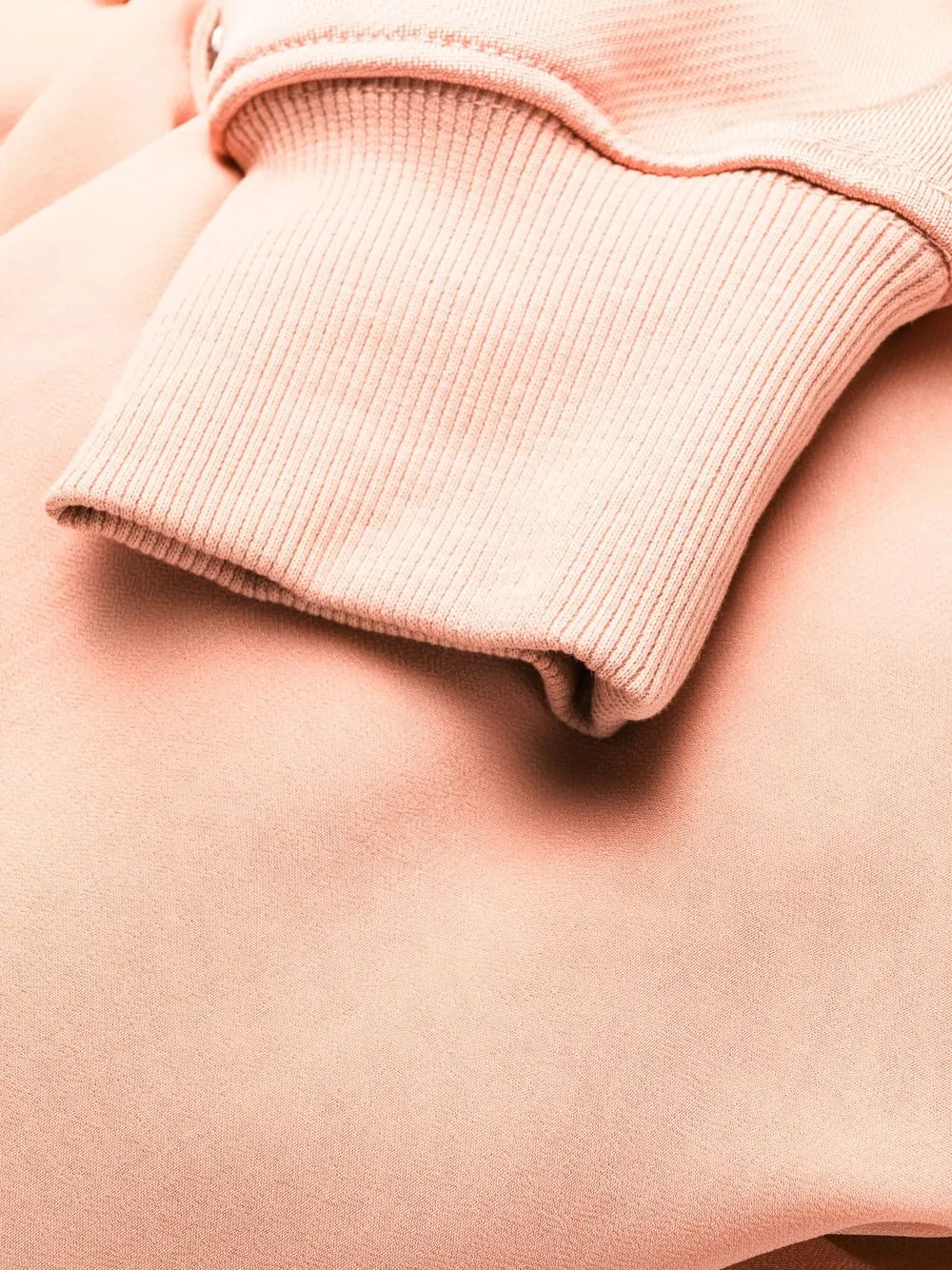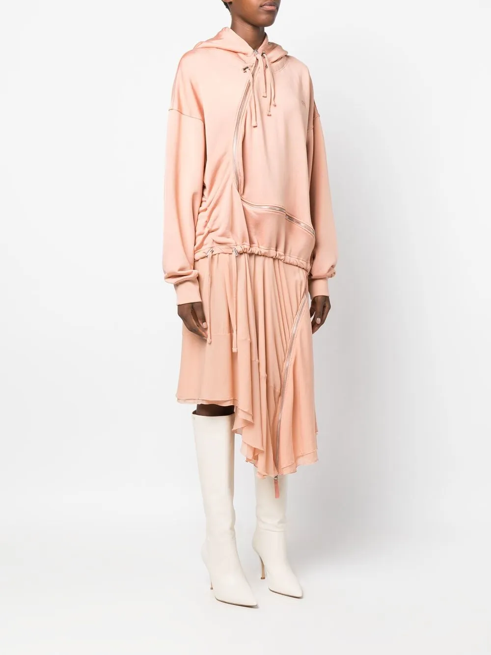 • Светло-розовый, смесовый хлопок, вышитый логотип на груди, асимметричная форма, затягивающийся на шнурок капюшон и длинные рукава.