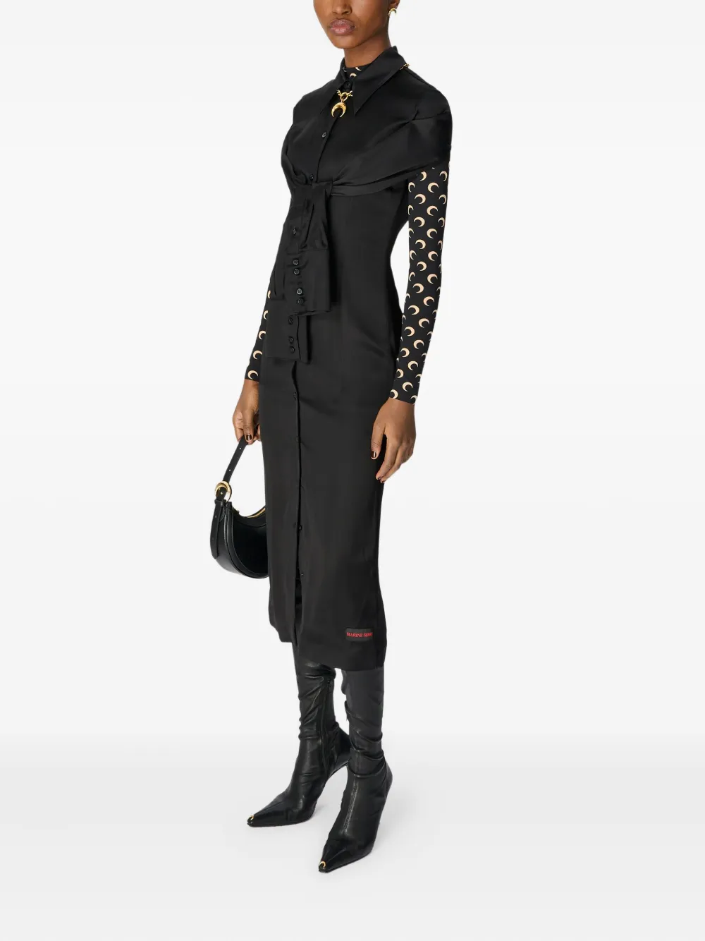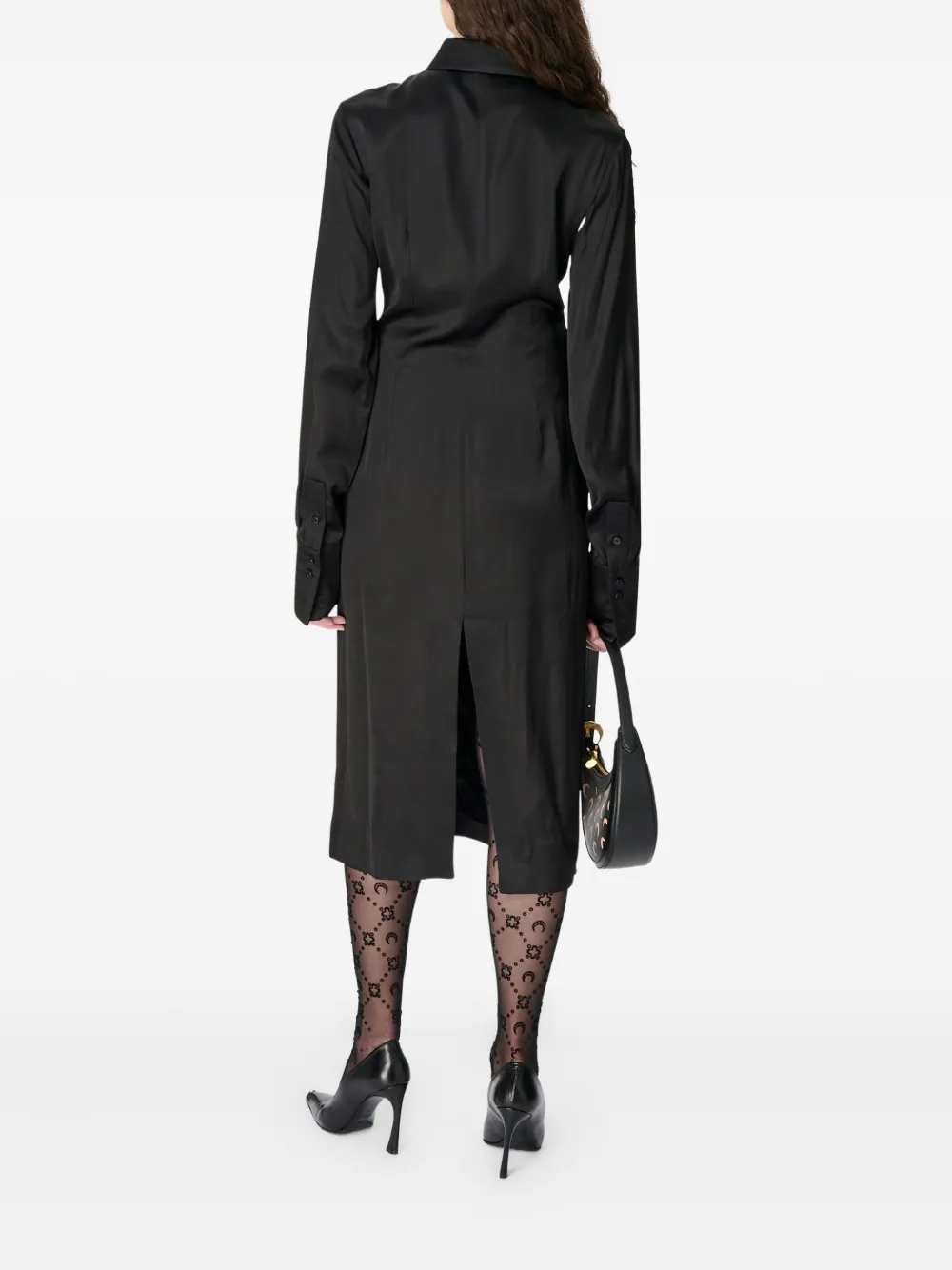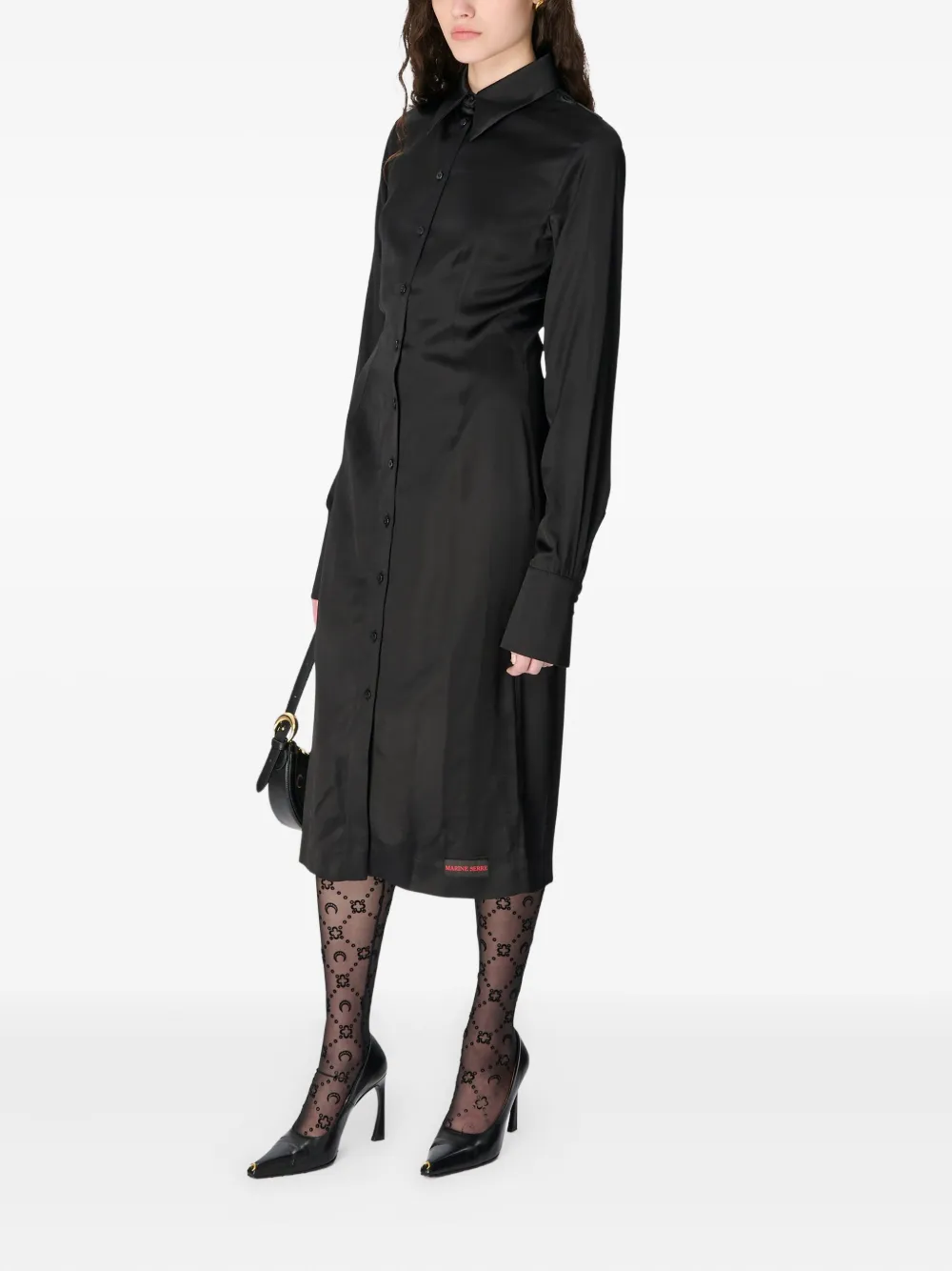 Миди-платье-рубашка, обернутое сатином Marine Serre, черный