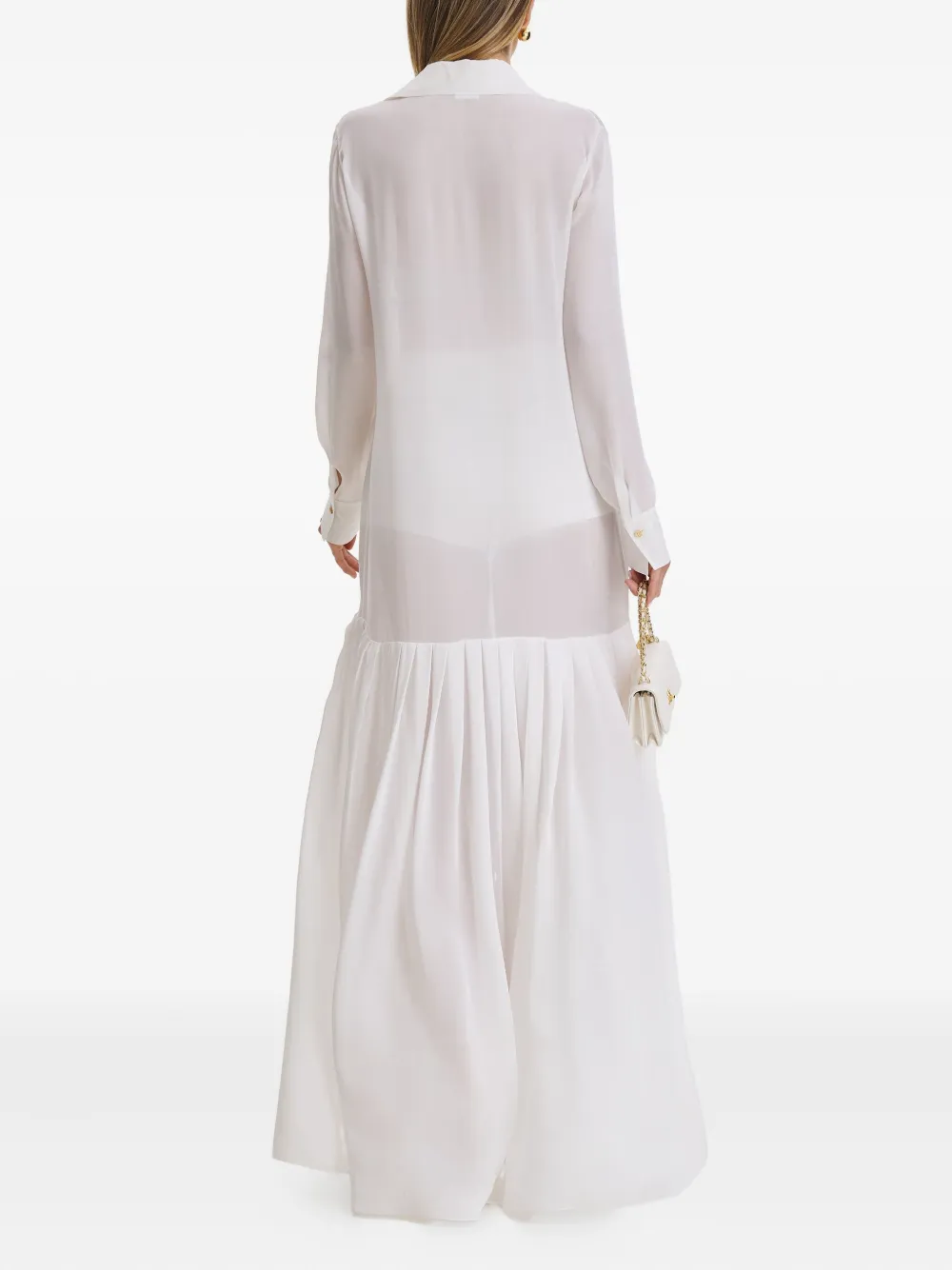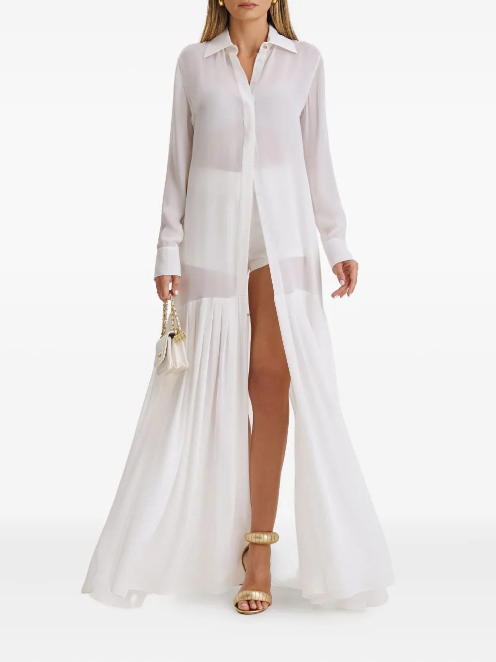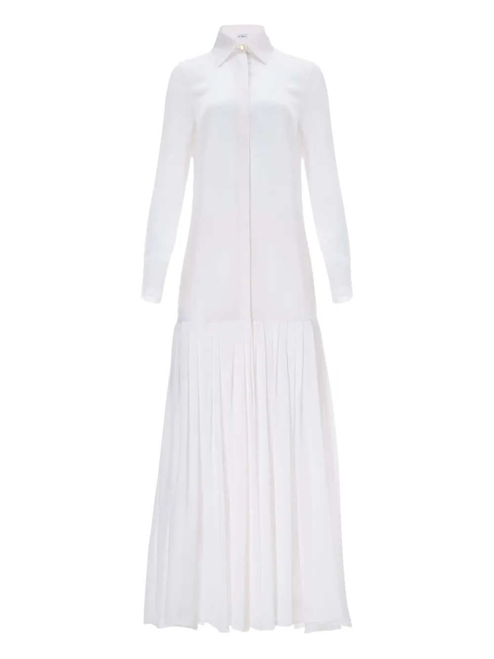 Белый длинные рукава застежка на пуговицы плиссированная юбка шелковый материал