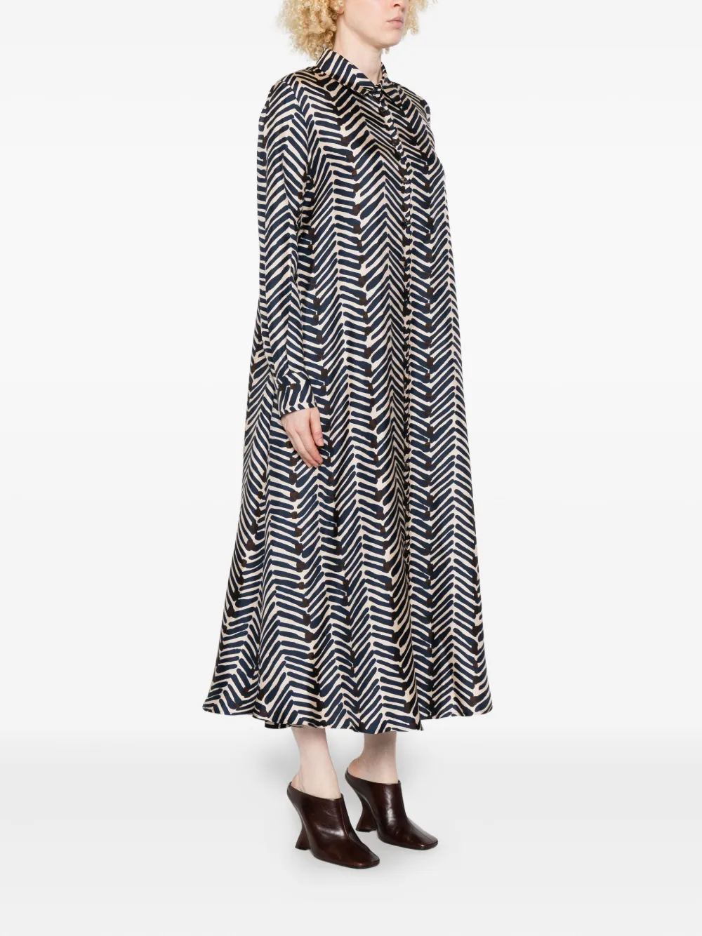 Платье-рубашка с поясом и геометричным принтом Kiton, синий 204 693₽