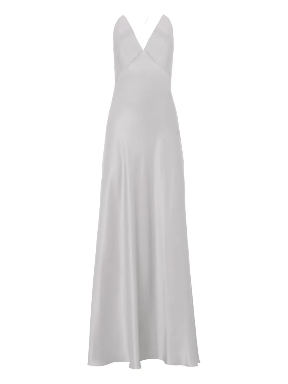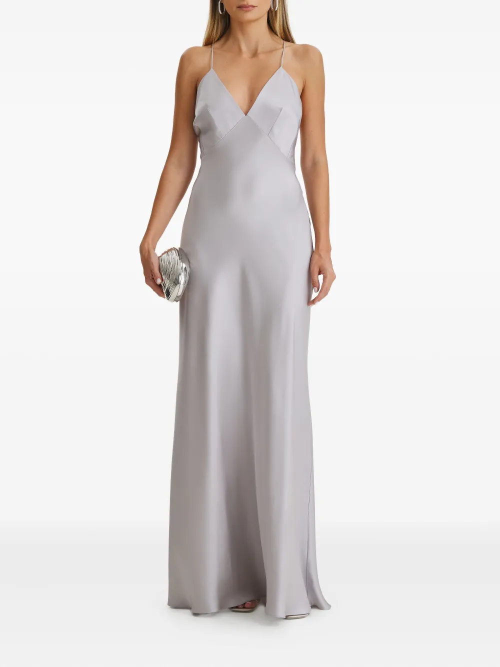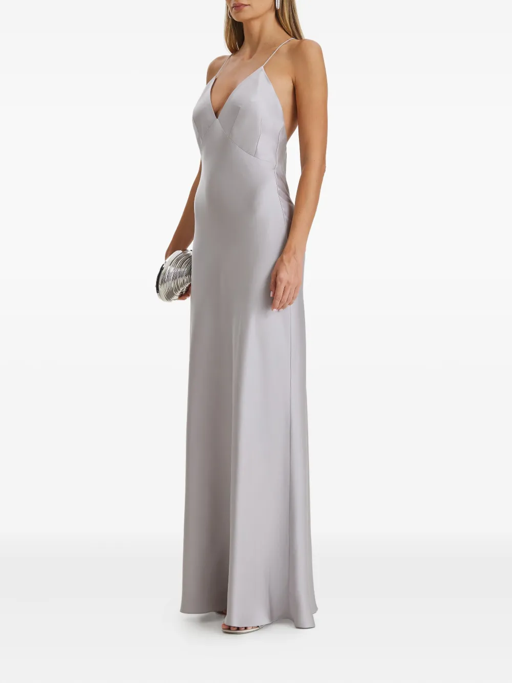 Серый тонкие бретельки V-образный вырез открытая спина макси-длина