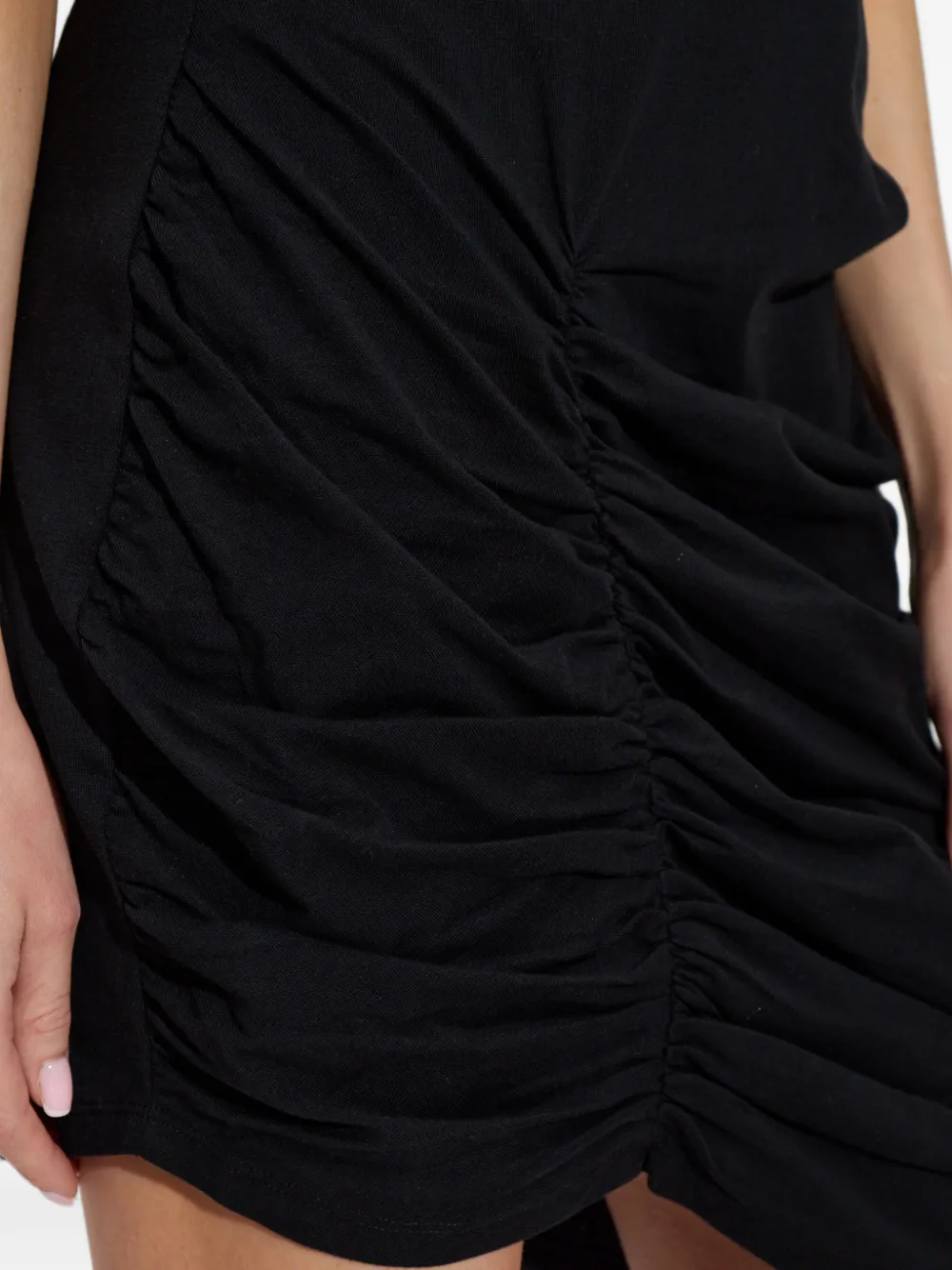 Черная футболка с круглым вырезом, короткими рукавами и драпировкой