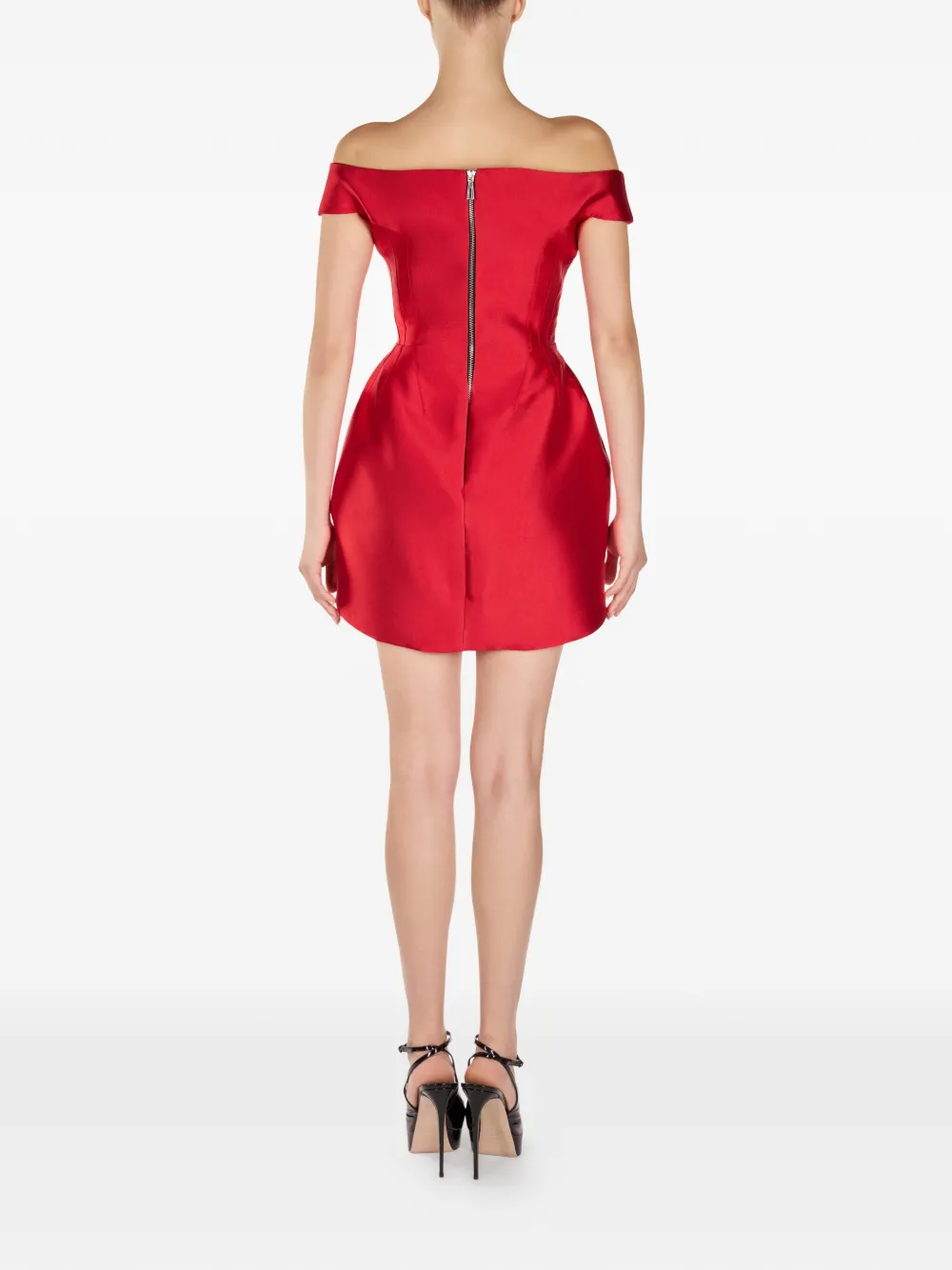 Красное платье с открытыми плечами и скрытой застежкой-молнией