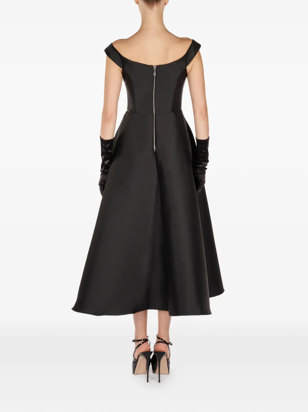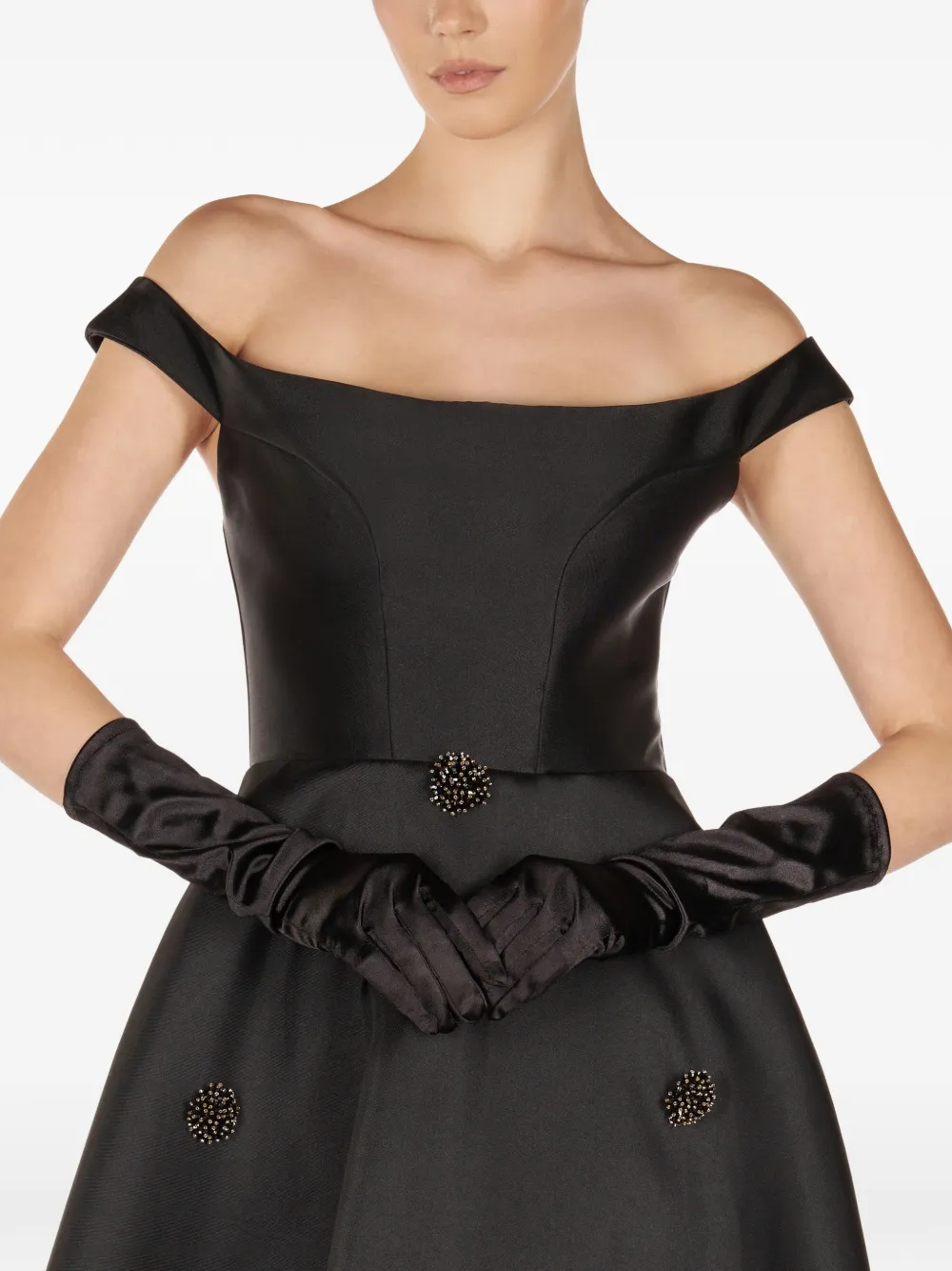 Черная юбка А-силуэта с украшениями, открытыми плечами и скрытой застежкой-молнией